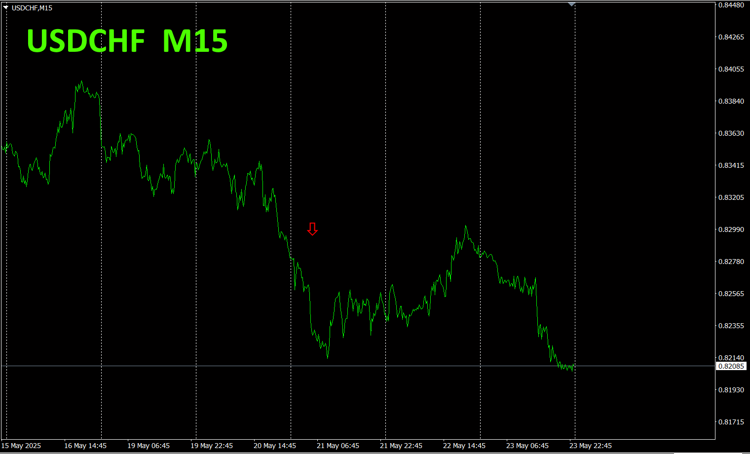 さて、このインジケータをUSDCHFの15分足に導入してみました。