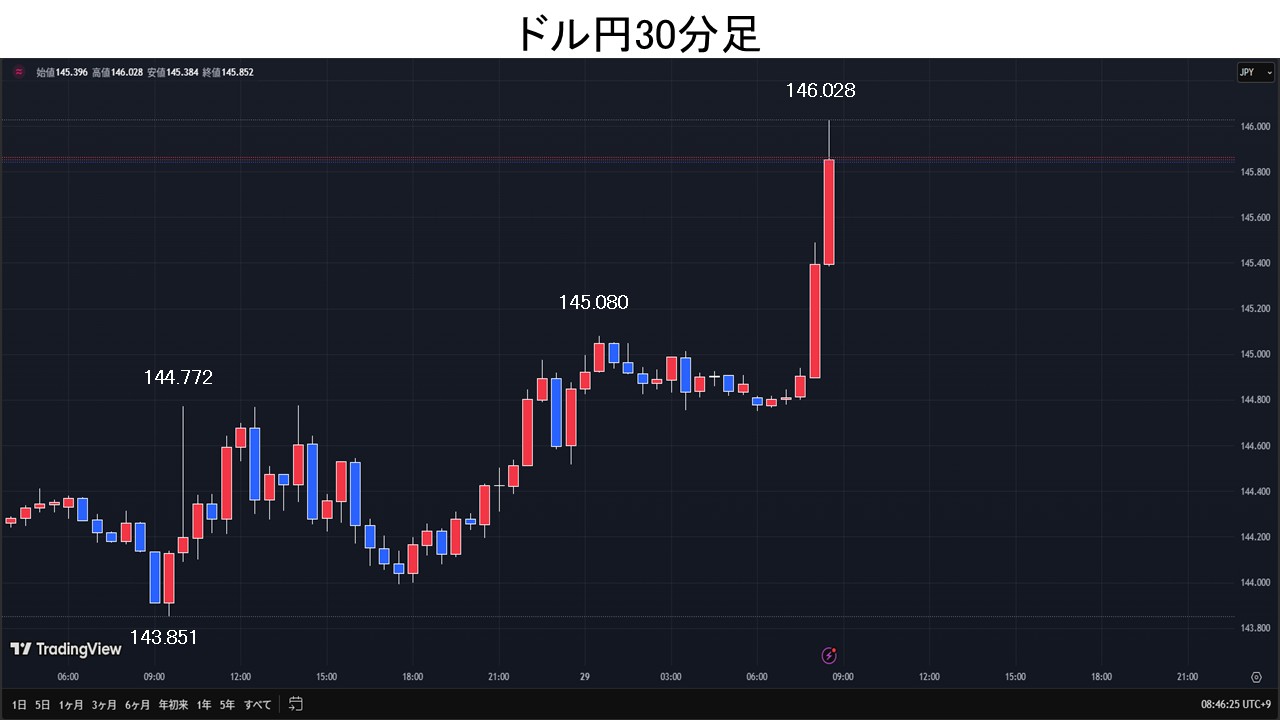 過度な米景気減速感が後退、ドル円は一時145円台へ上昇。