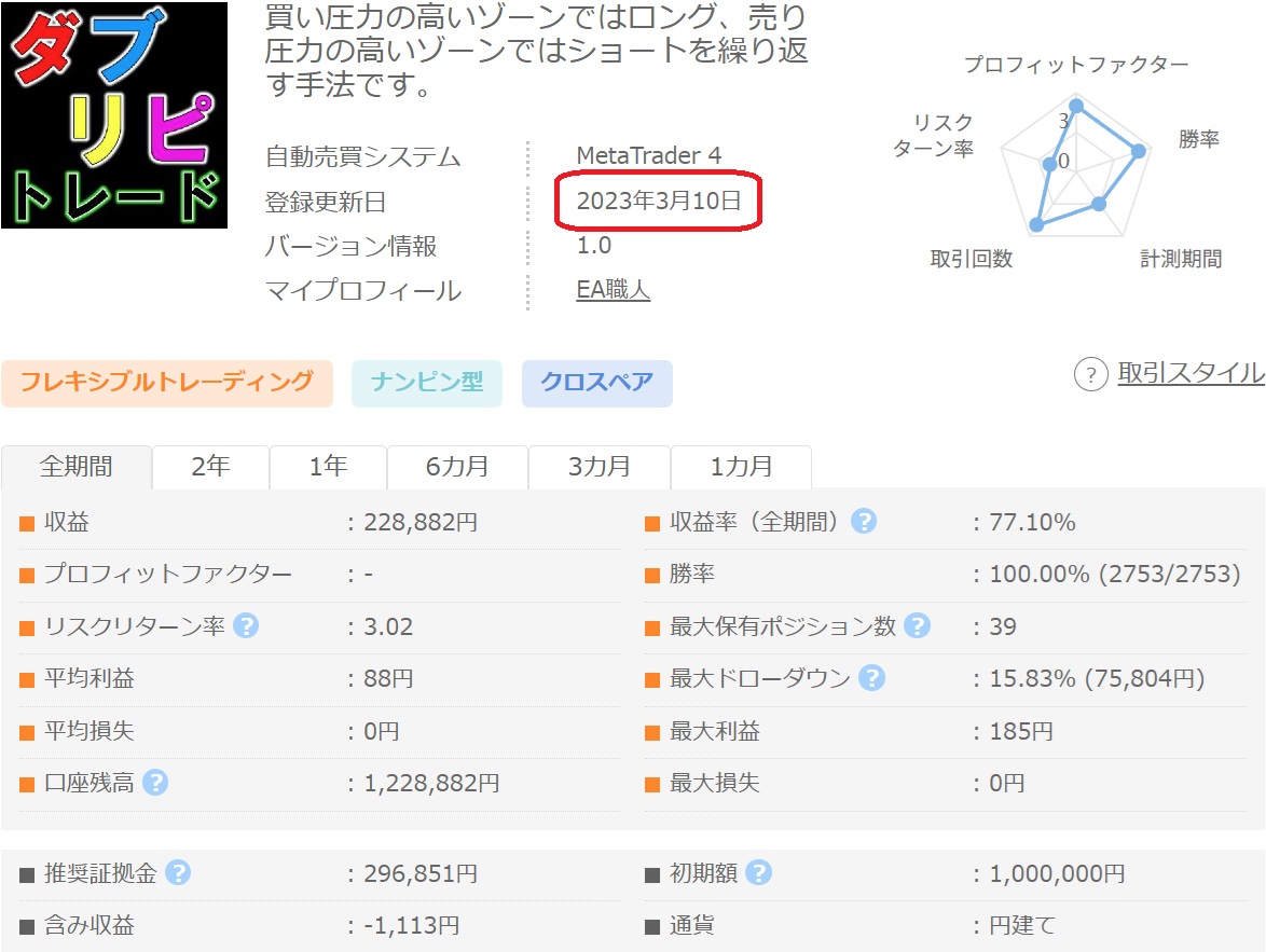 こちらのEA(ダブリピトレードAUDNZD)は2023年3月10日からリアル運用を開始しています。
