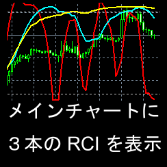 【無料】3本のRCIをMT4のメインウィンドウに表示するインジケーター