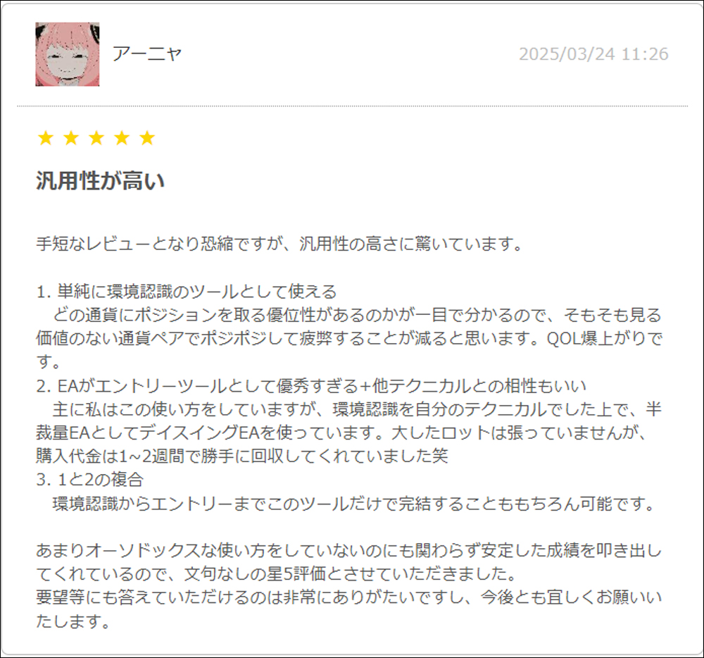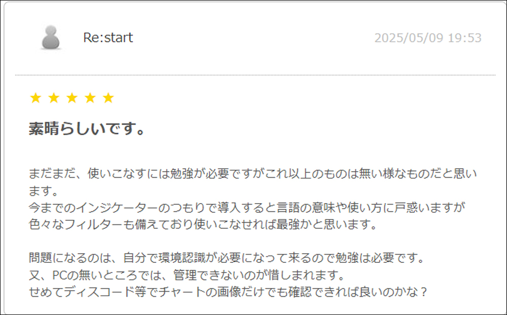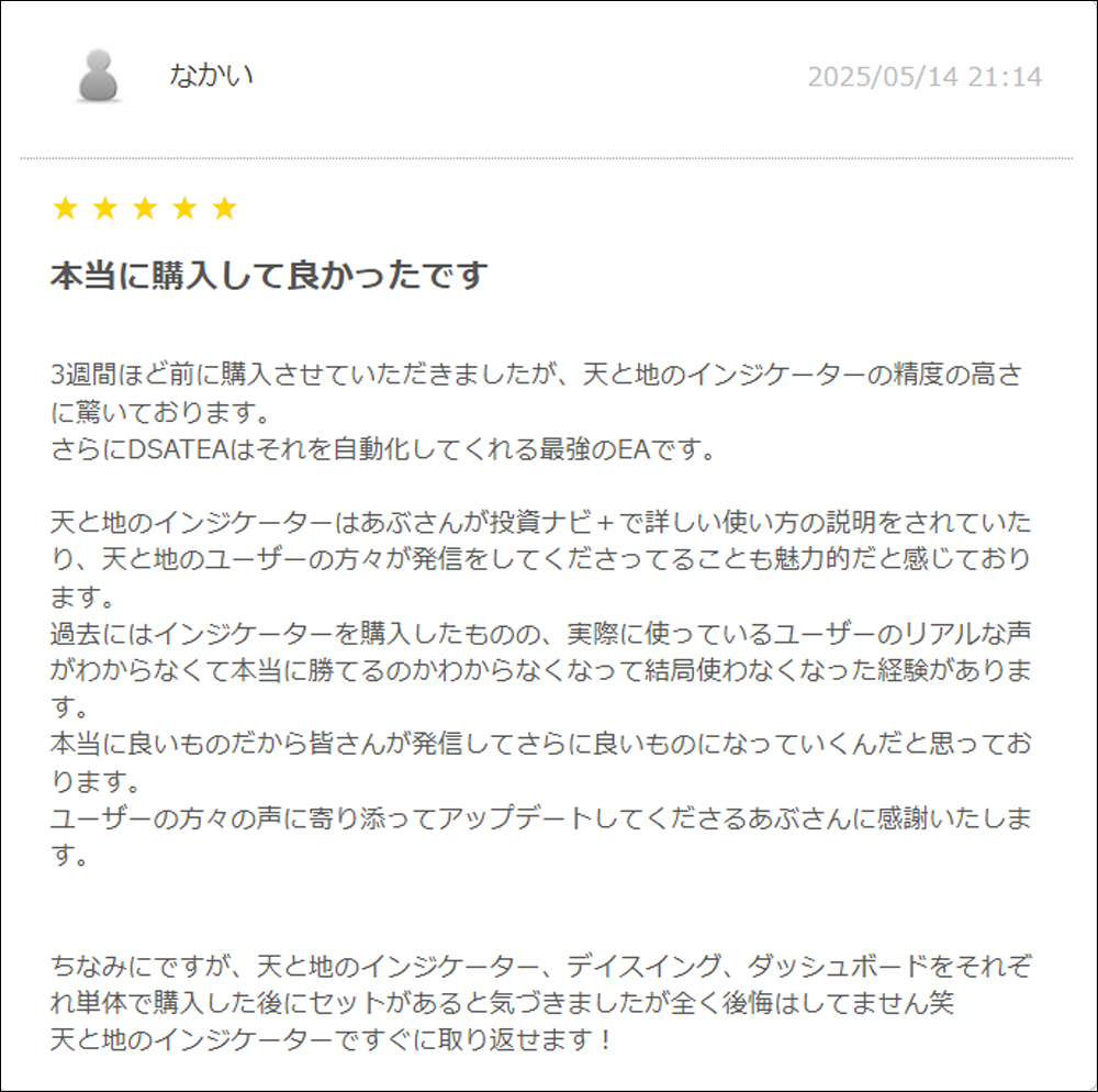 ・実際に天と地のインジケーターを使用されたユーザー様からのご感想(レビュー版)