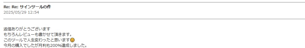 ども、いくらです。先日、ある購入者様からこんなご報告をいただきました。