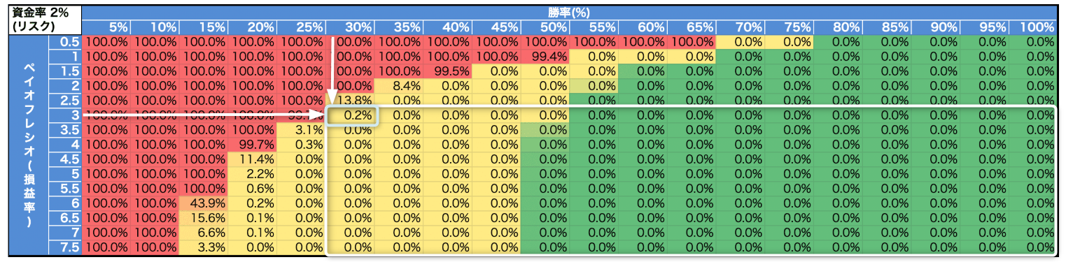 これは、表中の白枠に相当します(RR = ペイオフレシオ = 3)。