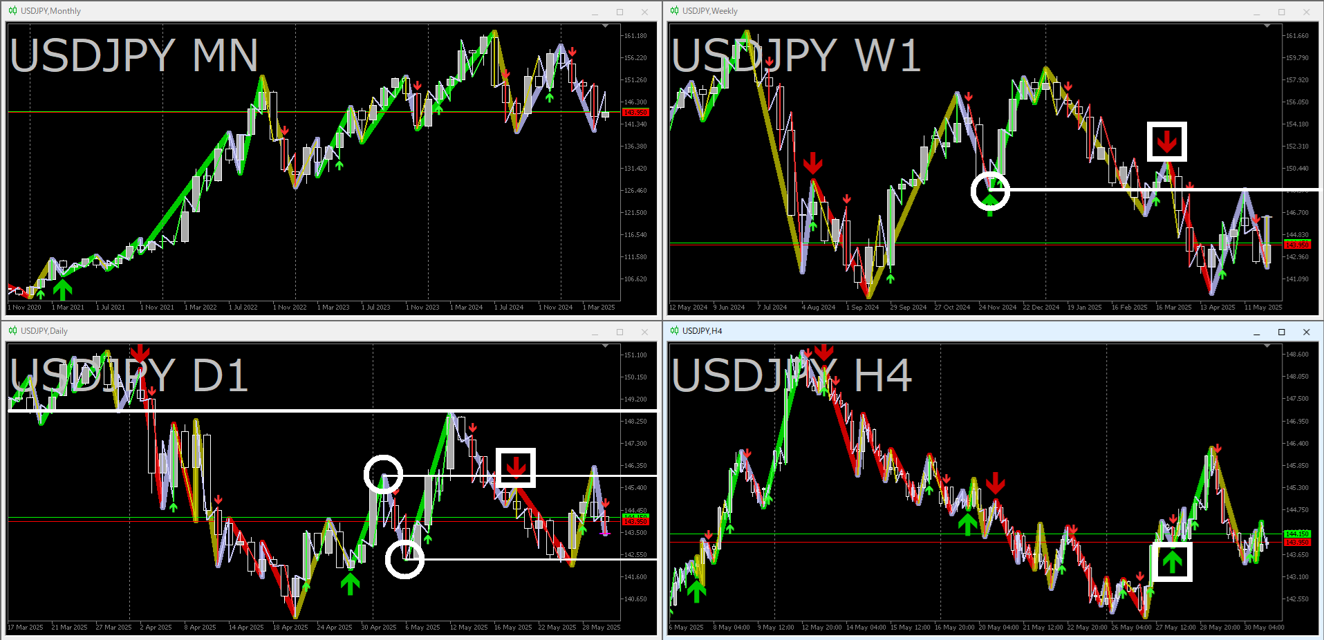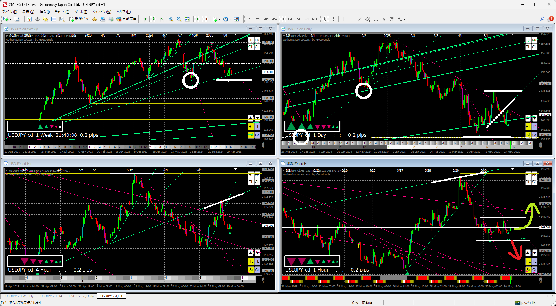 2025-5-26 > 2025-5-30 今週のドル円 + 来週のドル円 【トレンドラインPro2】