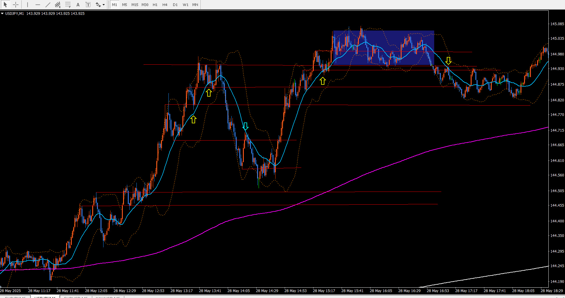 画像は、5/28ドル円1分足です。