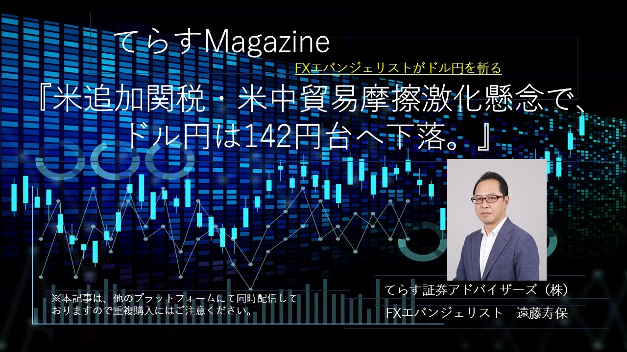 米中貿易摩擦懸念で、ドル円は143円台半ばへ下押し。
