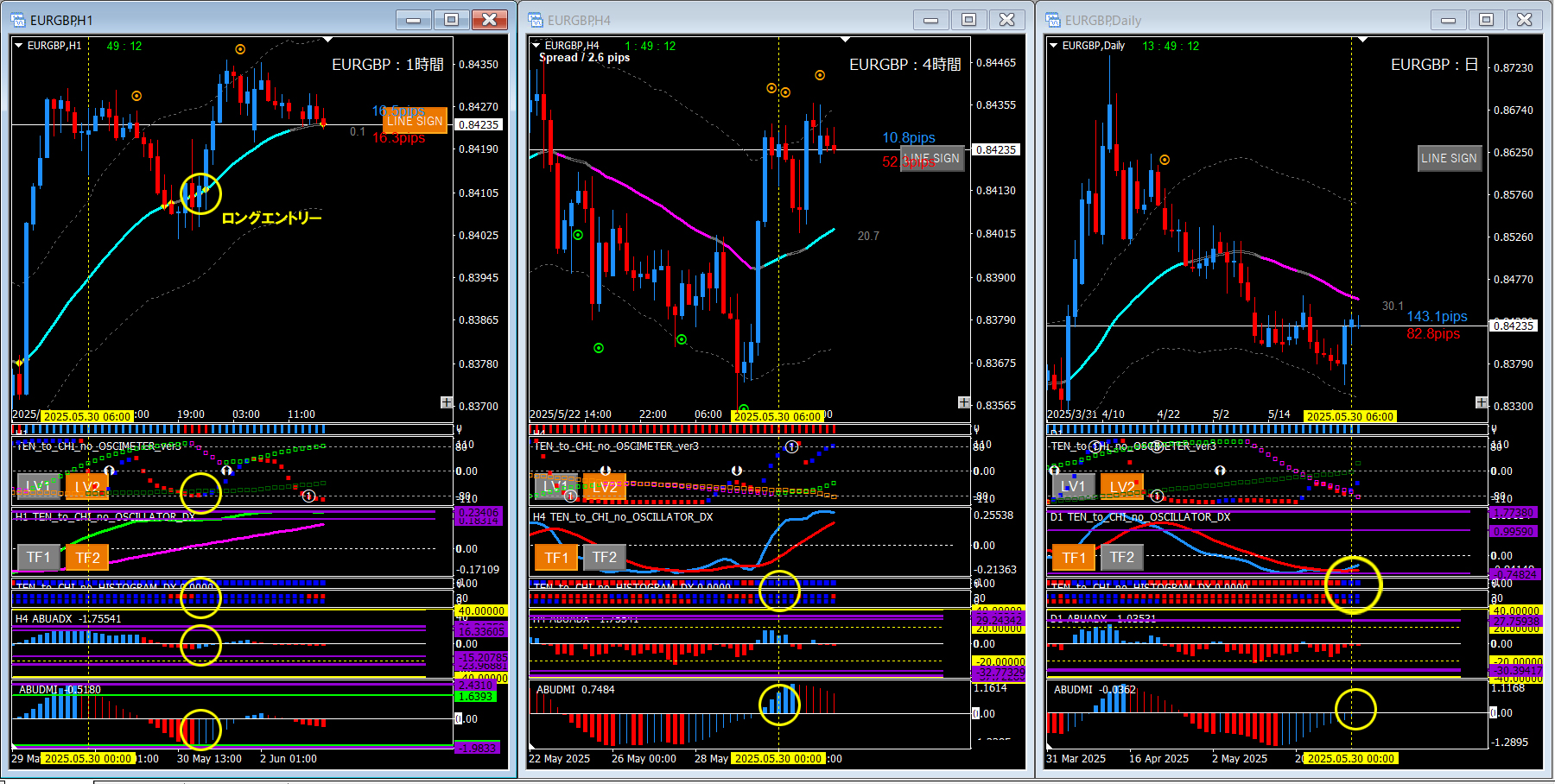 ユロポン(EURGBP)/ 1時間足+4時間足+日足 過去検証