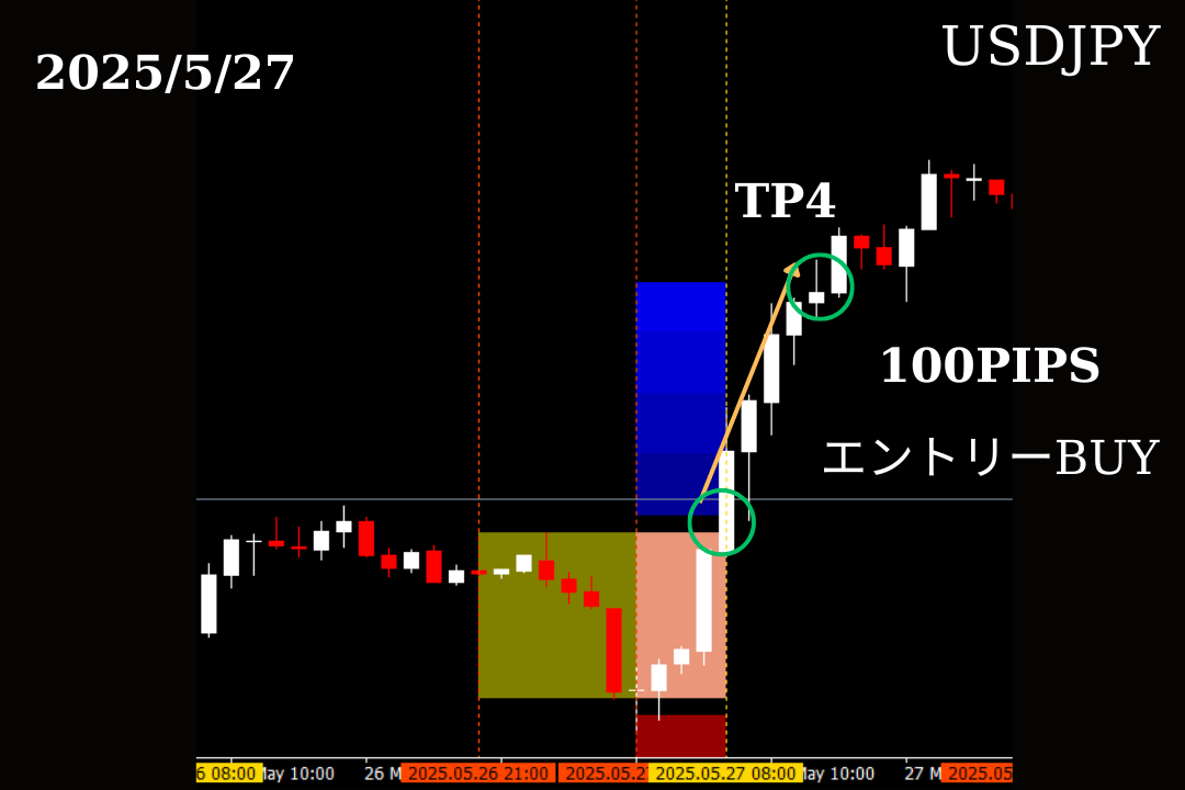Heracles Breakoutは、5月27日のUSDJPYトレードにおいて、100PIPsという目覚ましい利益を上げ、