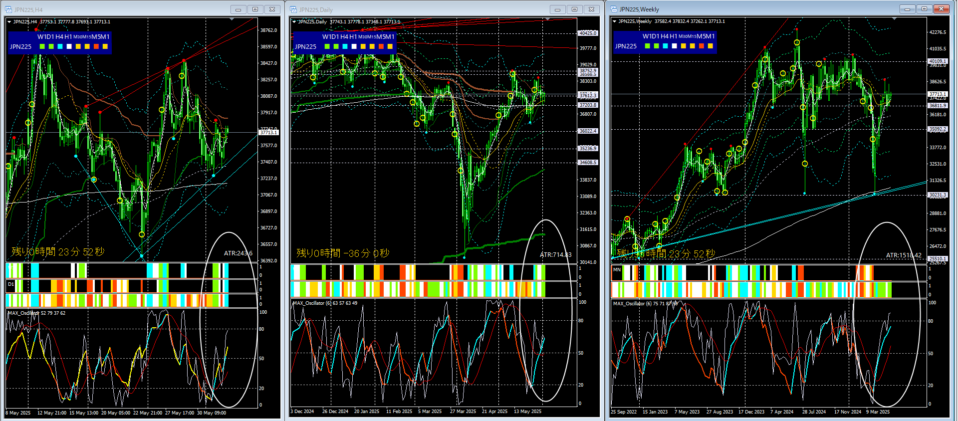 日足:MAXオシレーター:シンクロバンド 「弱い上昇」