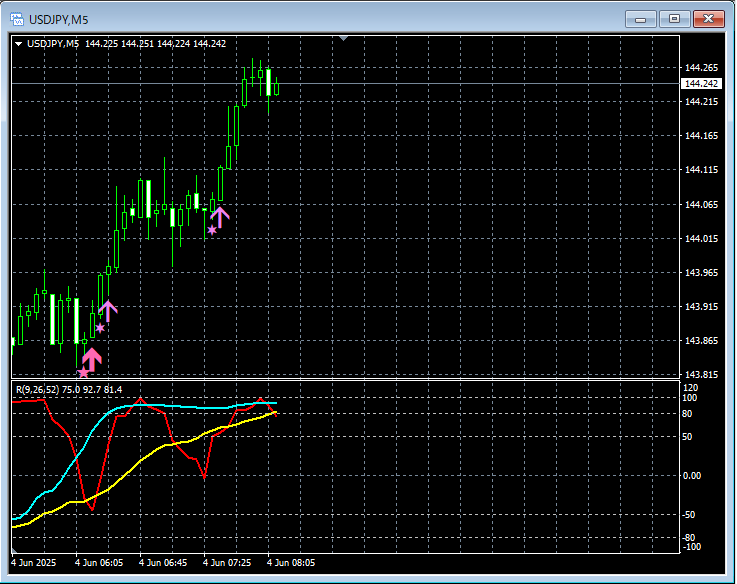 【RCIを極めて勝つ!!本日のドル円 5分足 20250604】mBDSRとR1R2S2のサインの両方を活用する