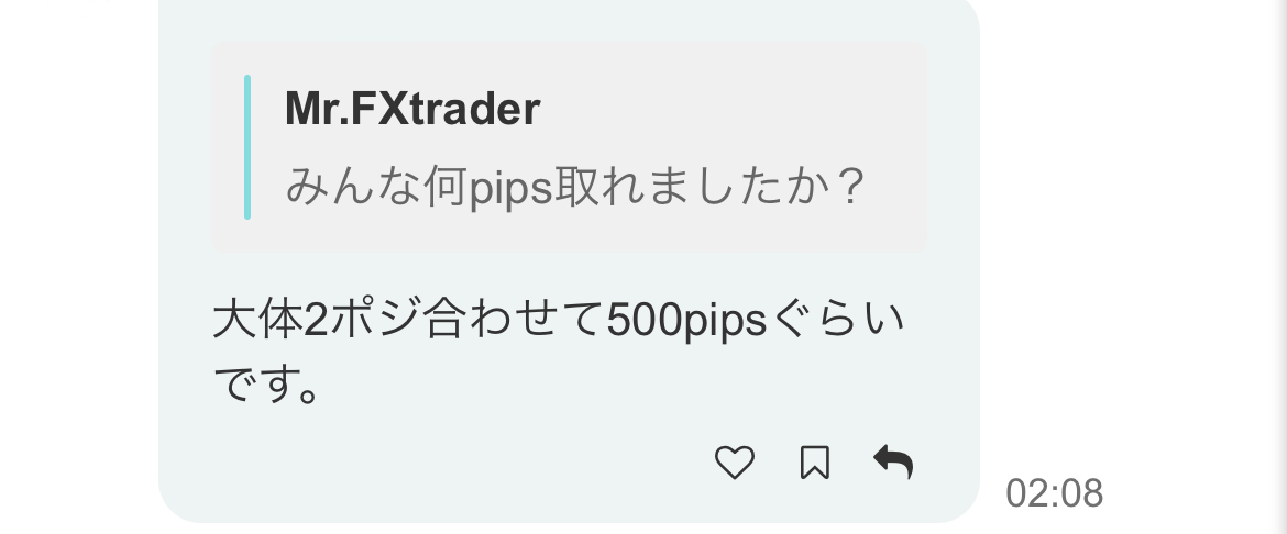 その結果が、+2600ドル。190pips 500pips取った人もいます。