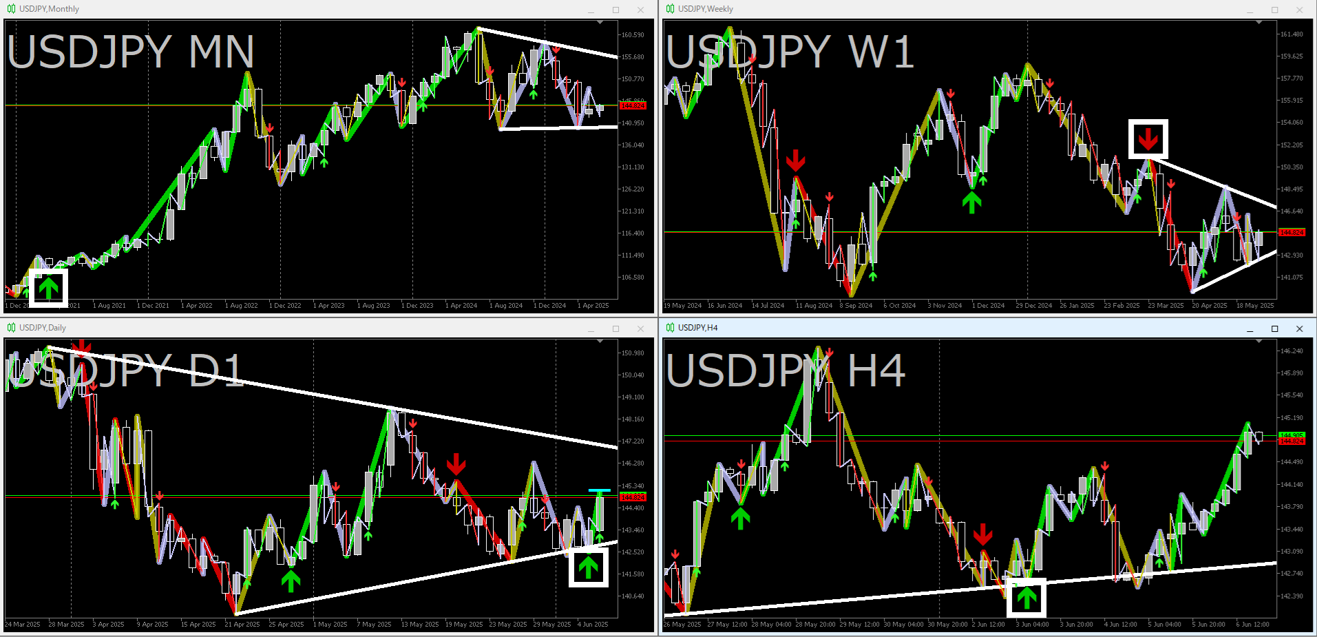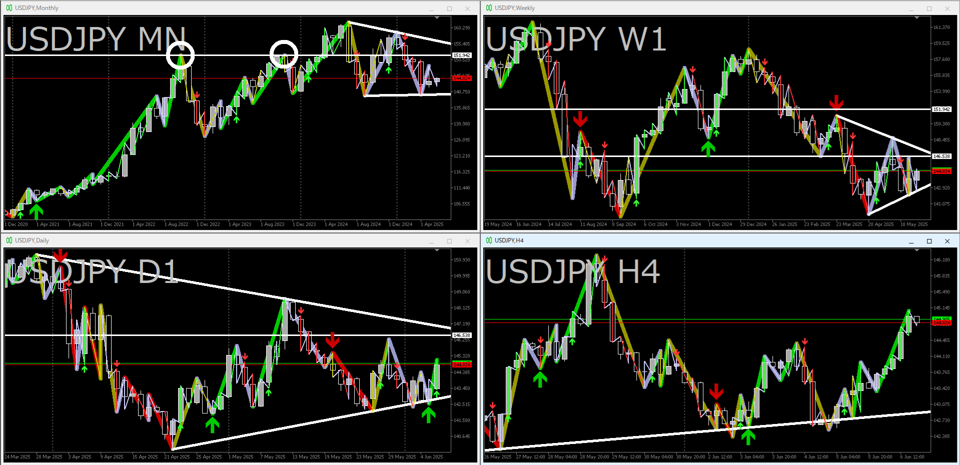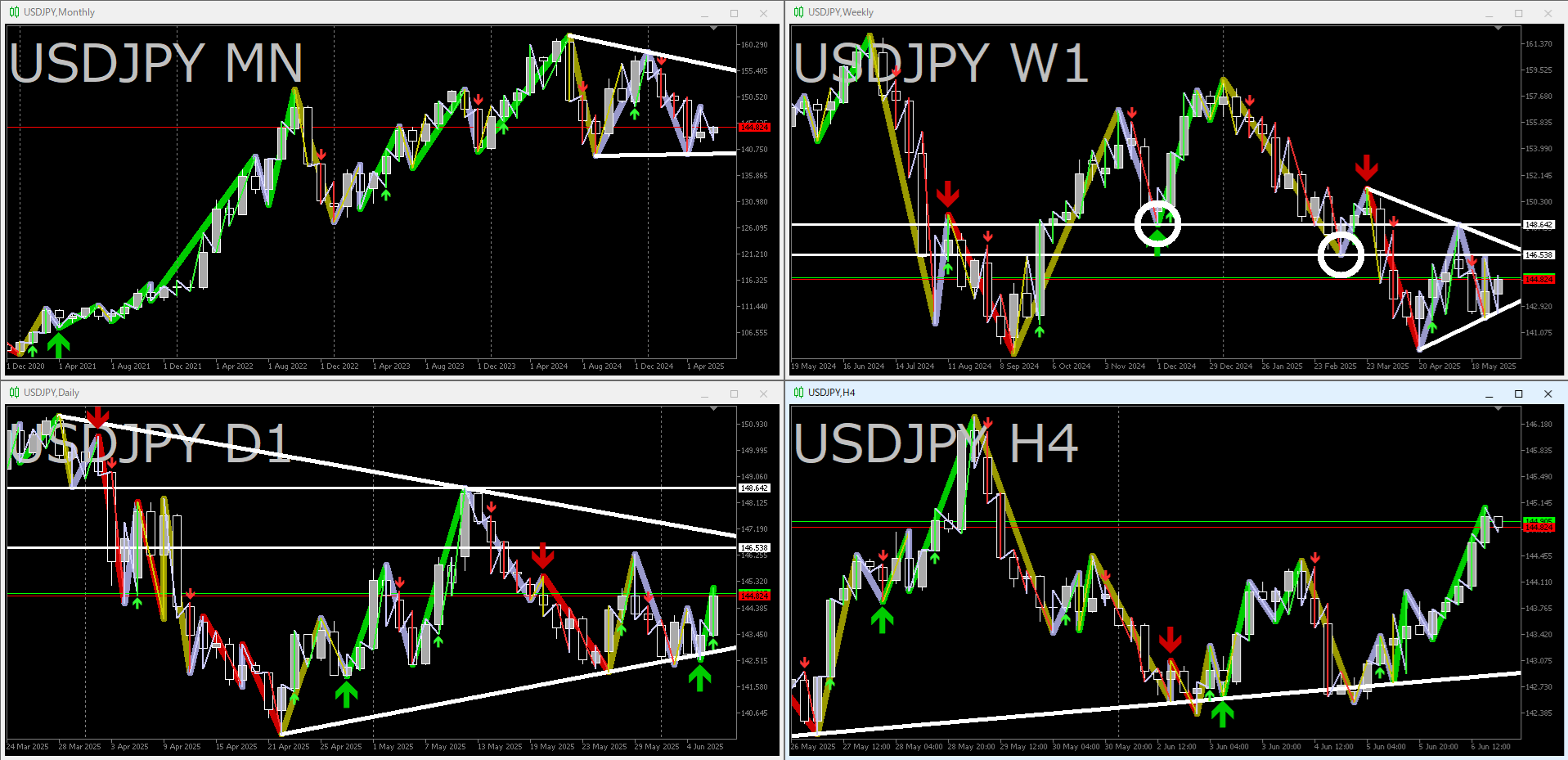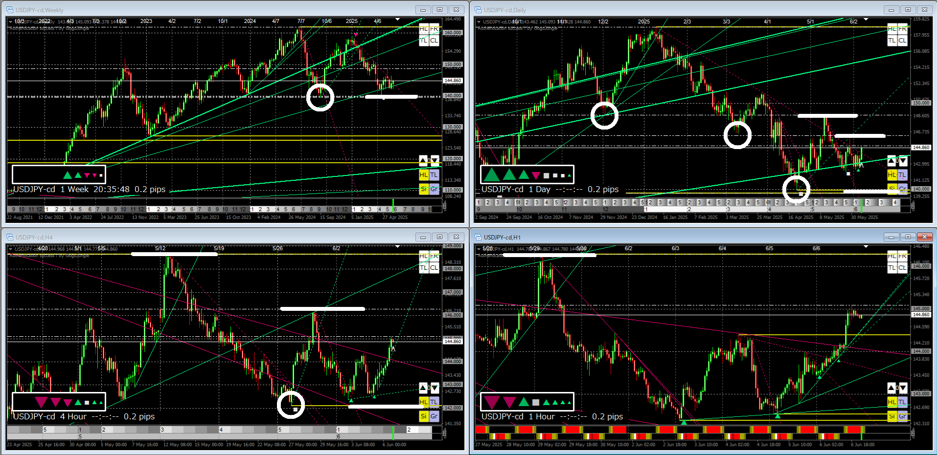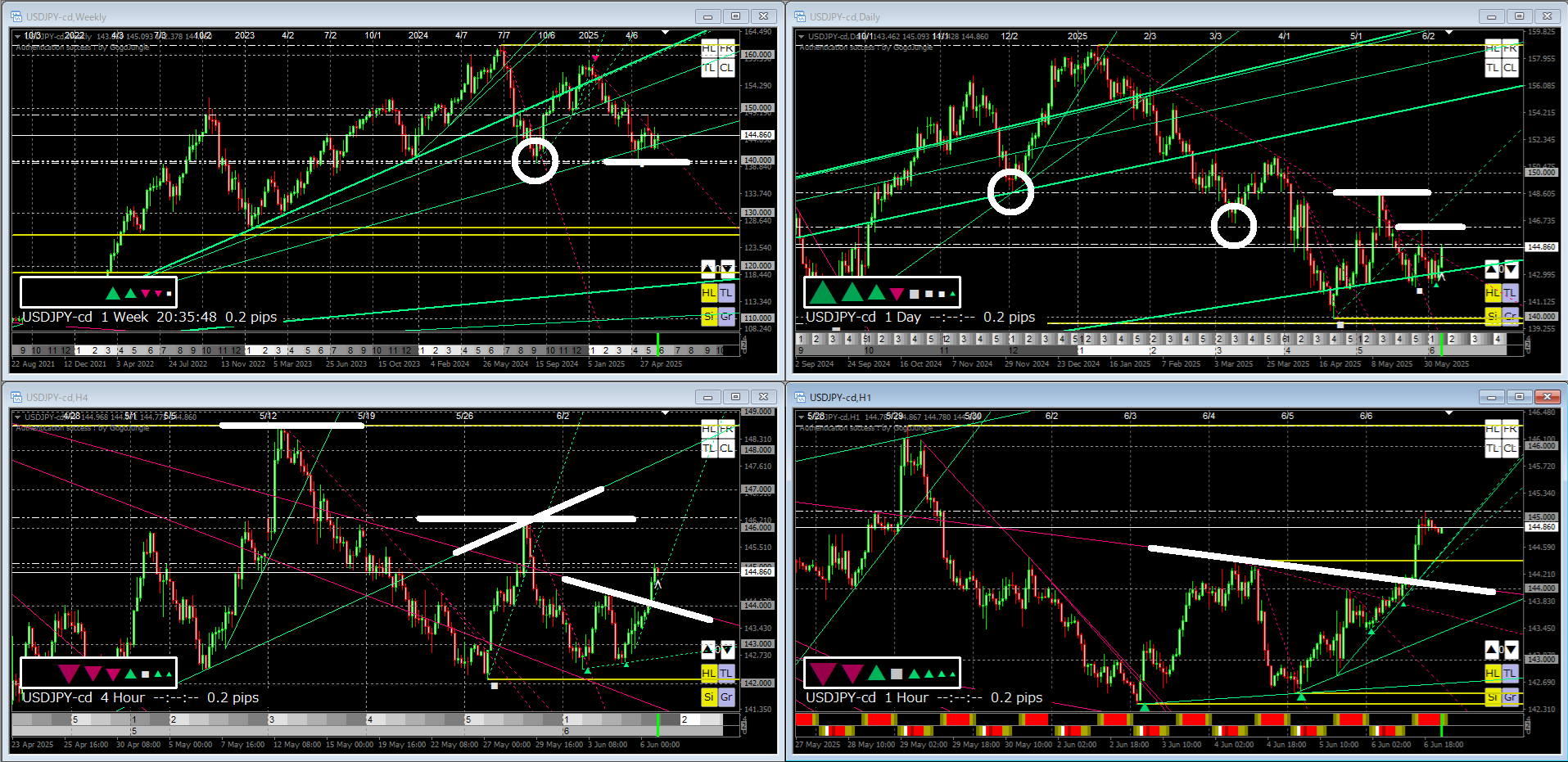 2025-6-2 > 2025-6-6 今週のドル円 + 来週のドル円 【トレンドラインPro2】