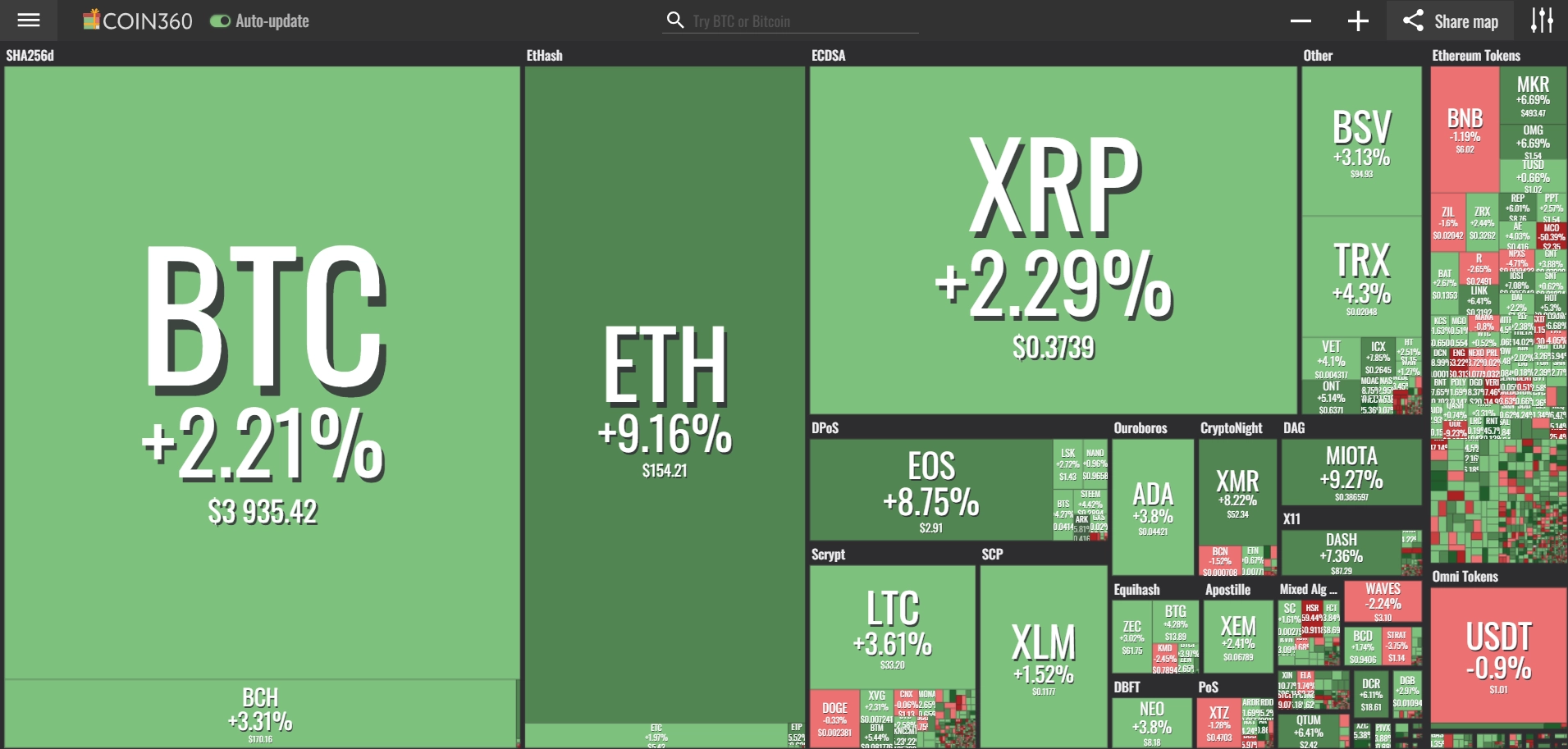 coinmarketcap(コインマーケットキャップ)のサイトから、ドミナンス(各銘柄が仮想通貨全体の時価総額に占めるパーセンテージ)を定点観測していきます。仮想通貨全般が下方向に大きく動き出している相場状況を受け、毎日更新することとし、仮想通貨業界を俯瞰および転換期を早期に発見することを目的とします。