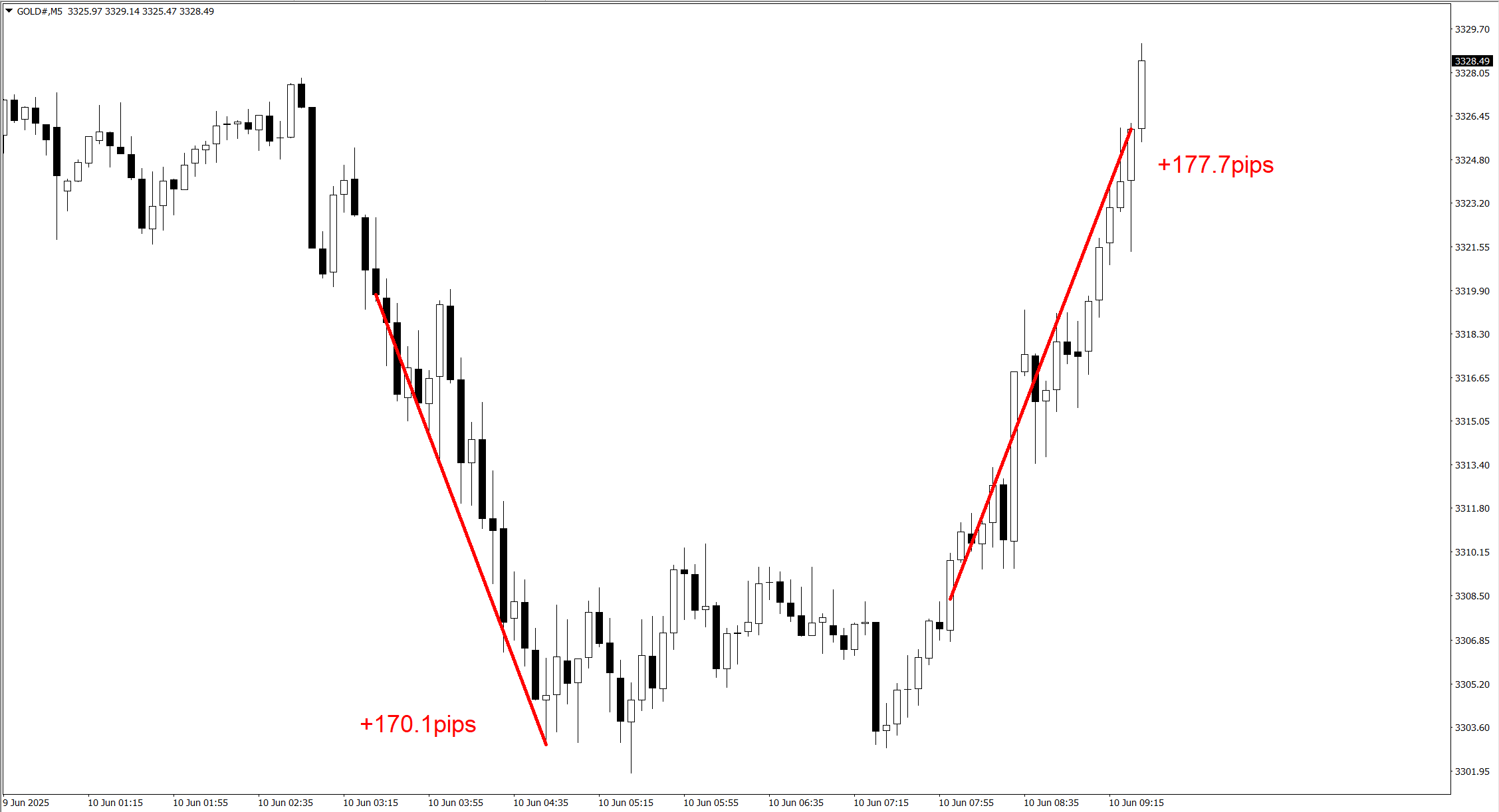 これを、エントリーも決済も成行注文でトレードするとなると、