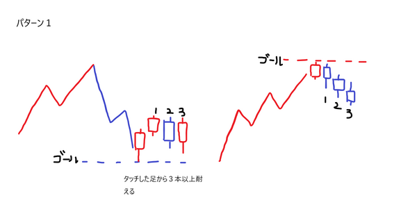 1時間足のゴールを迎えたら、ある数値まで戻し、先に進む