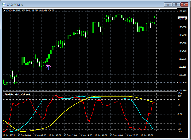【直近の CADJPY 15分足】RCIの2段階判定を利用したR1R2S2のサイン カナダドル円