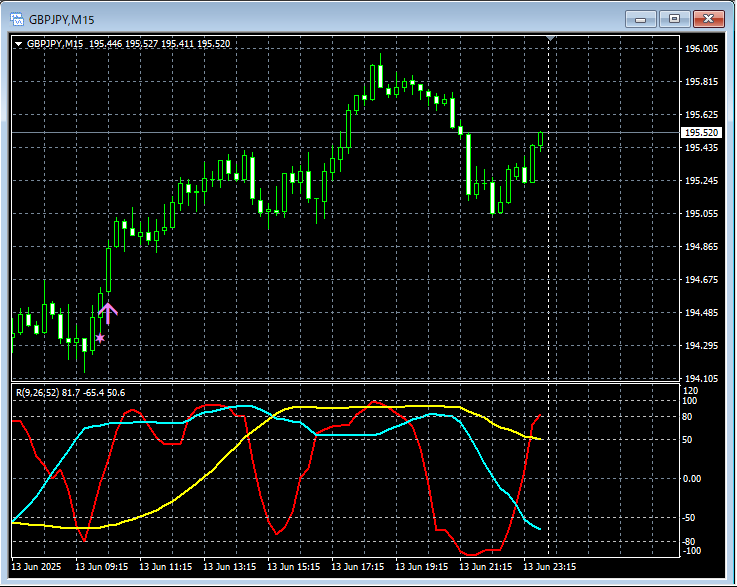 【直近の ポンド円 15分足】RCIの2段階判定を利用したR1R2S2のサイン GBPJPY