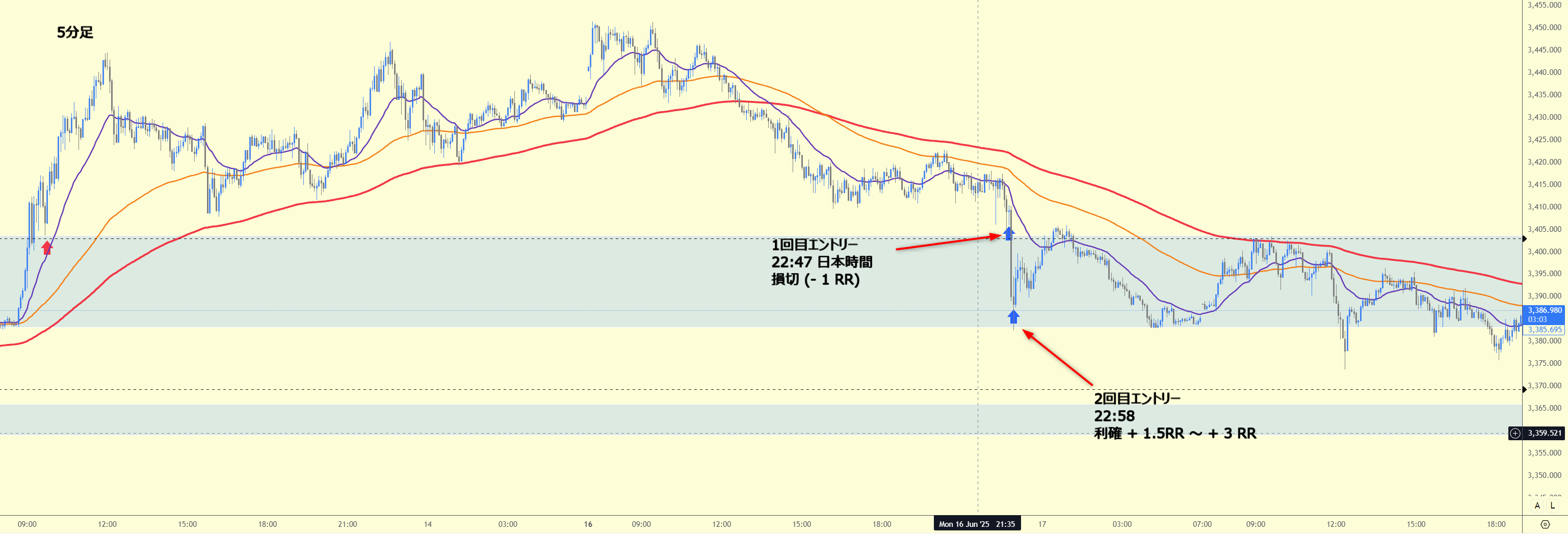 リアルトレード (ゴールド) 2025年6月16日(月) トレードポイント解説 (+ 3 RR / 160 pips)