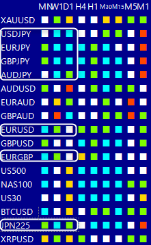 ご覧いただいた通り、複数銘柄の複数時間の状況を一括で表示します。