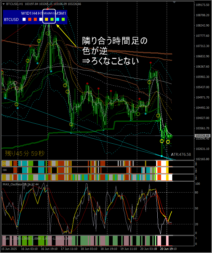 ■ 重要!隣り合う時間足の色が逆の時は様子見