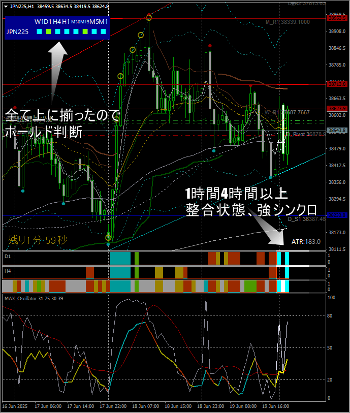 ⇒1時間足、4時間足と、上を示唆する・ホールド