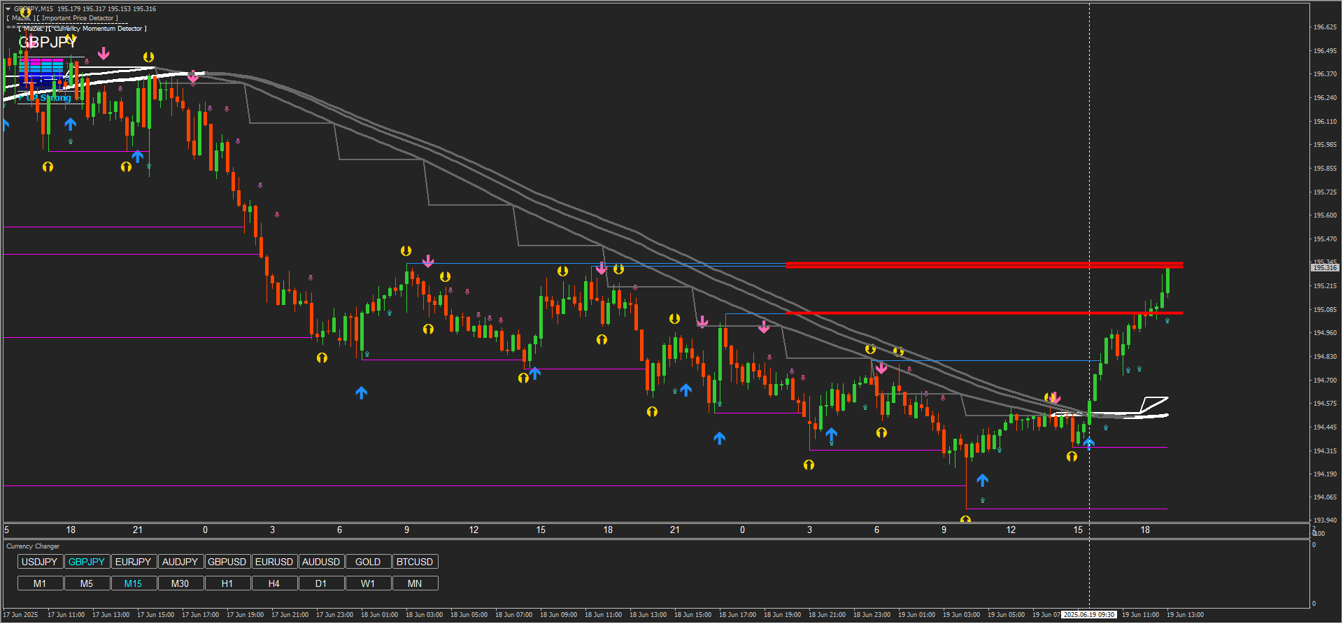 【 2025.06.19 】 の GBP/JPYチャートを見てみよう。