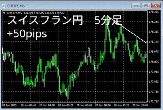 スイスフラン円 +50pips【RCIを極めて勝つ!!2025/6/20】