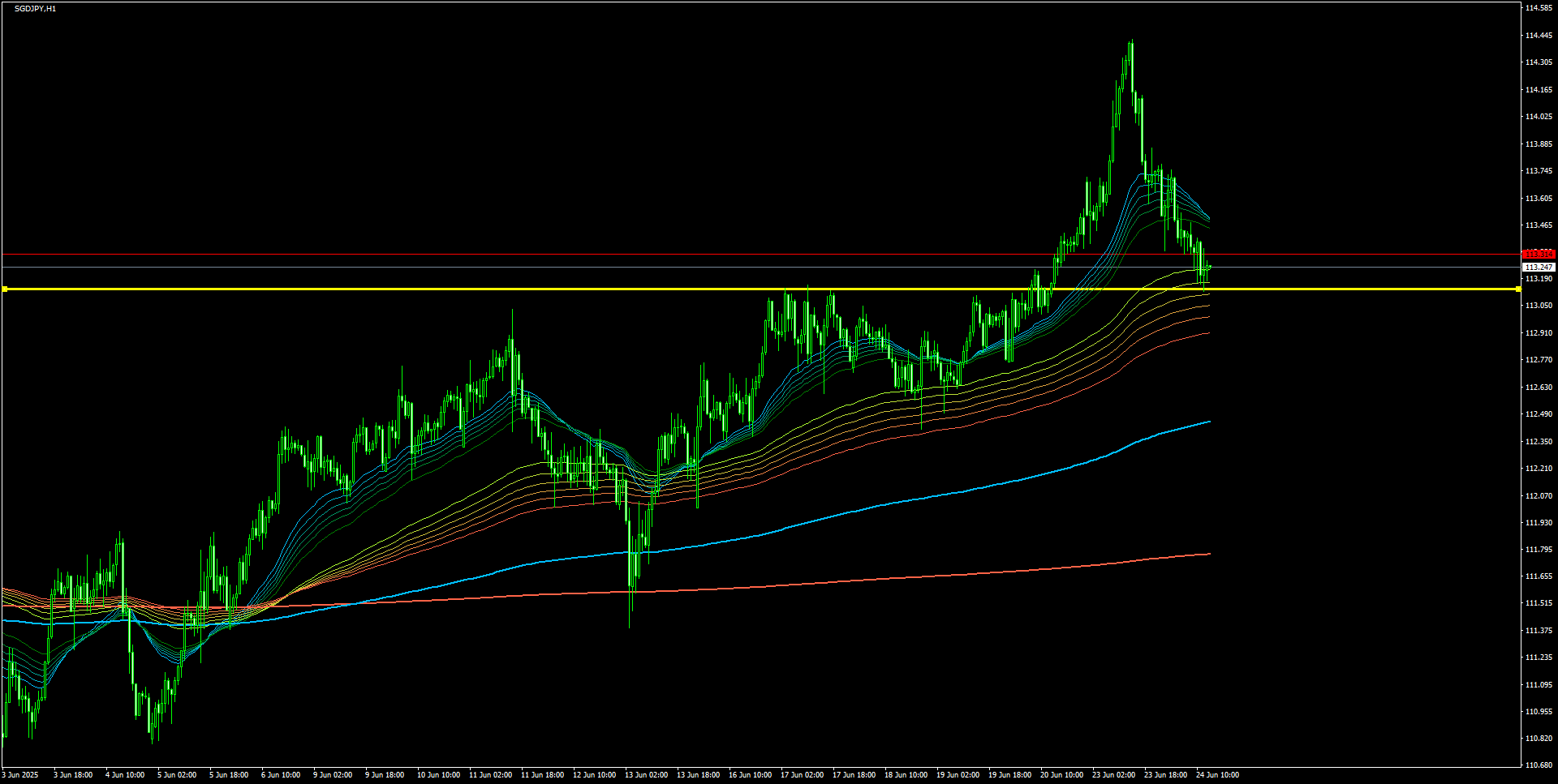 138.6pipsの利益!:GMMAトレード手法を使ったシンガポールドル/円(SGD/JPY)の1時間足買いトレードほか