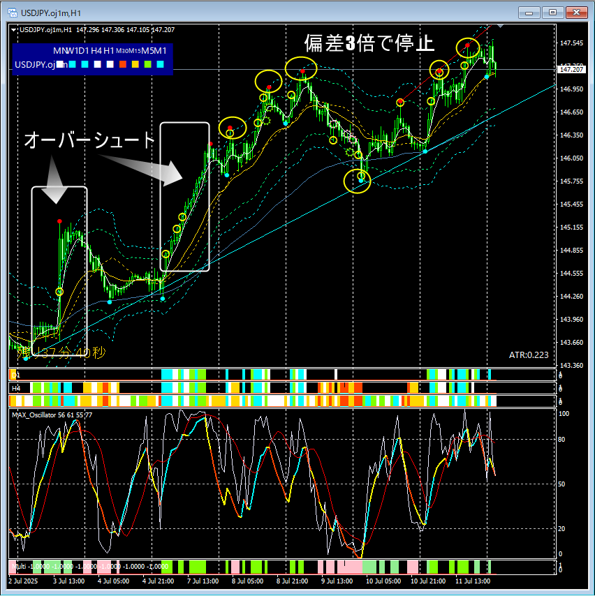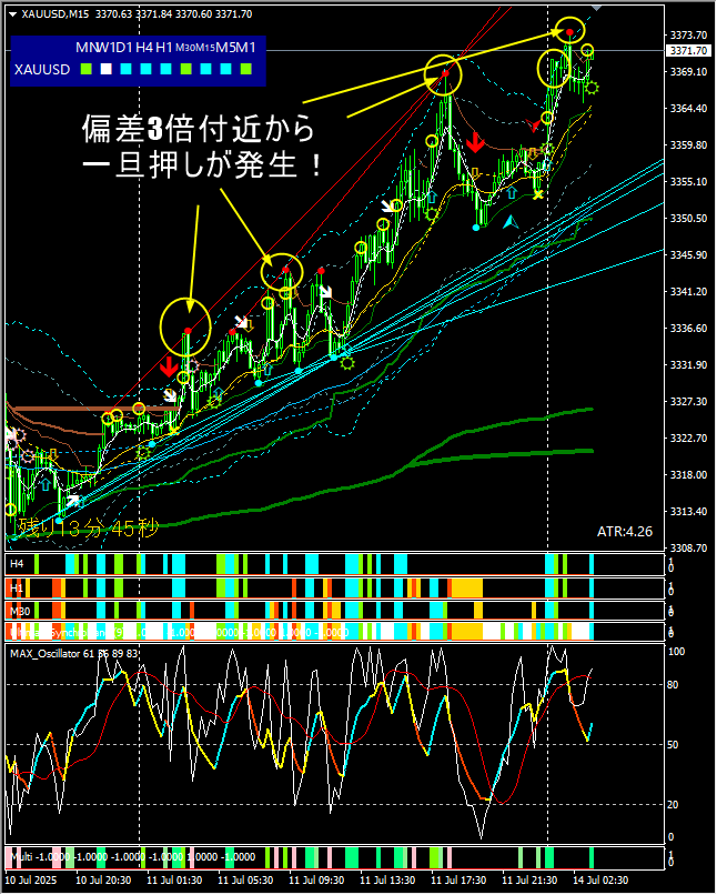 5分足以上の偏差3倍付近で押し戻し、あるいは反転が発生することが多いので、