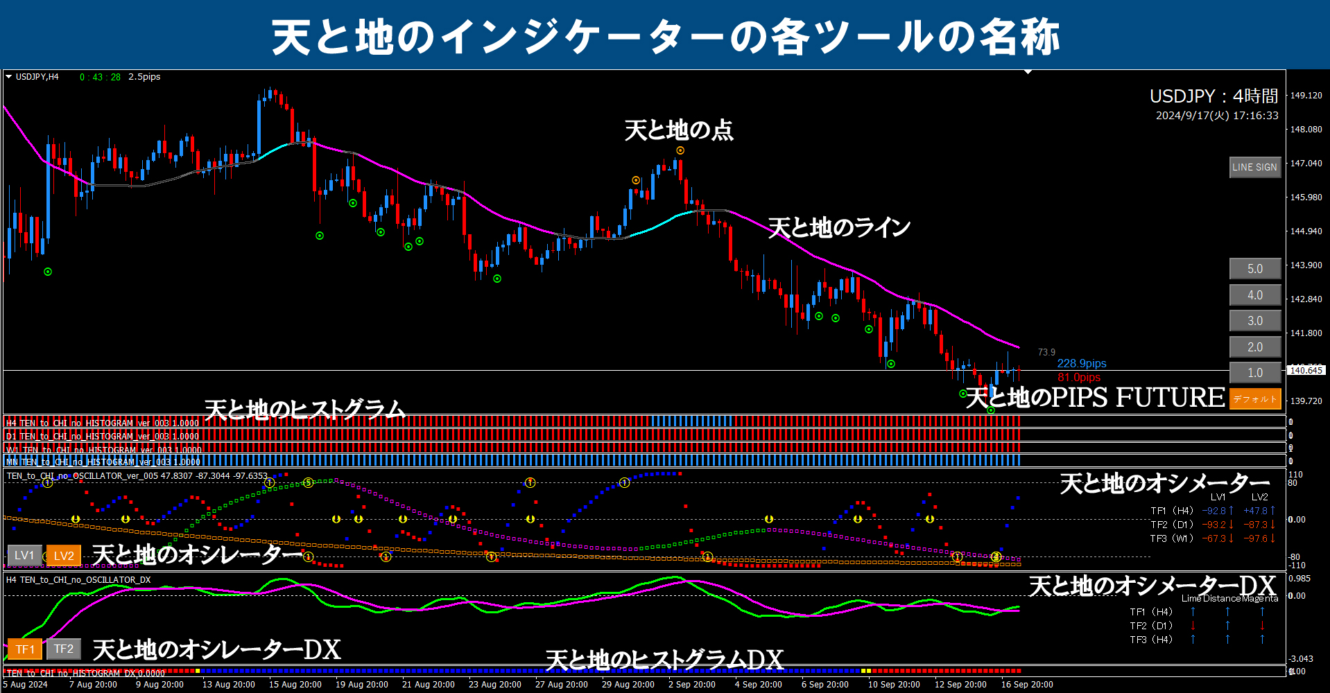 ・本記事では「天と地のインジケーター」を使用した「天と地のデイスイング」という手法での検証、考察をしております。天と地のインジケーターの基本のトレード方法につきましては2024年8月以前の記事をご参照ください。
