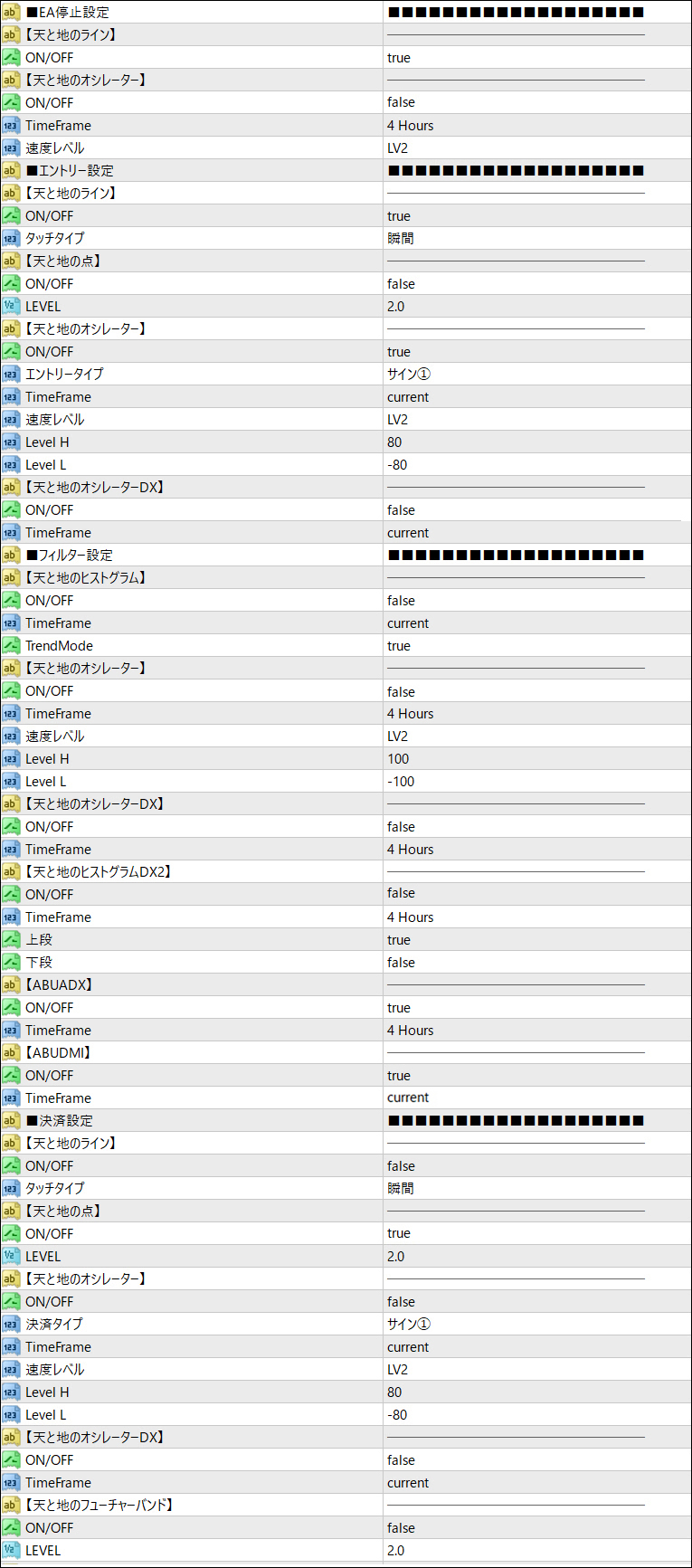 私が今回の相場でDSATEAをセットするならば、パラメーターは以下のように設定します。ご参考までに。