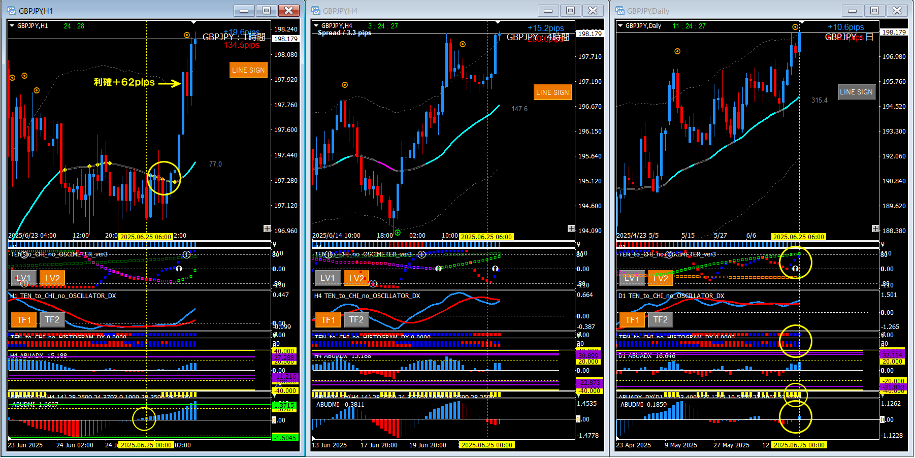 【2025年6月25日】天と地のインジケーターのデイスイング手法検証(ポン円)