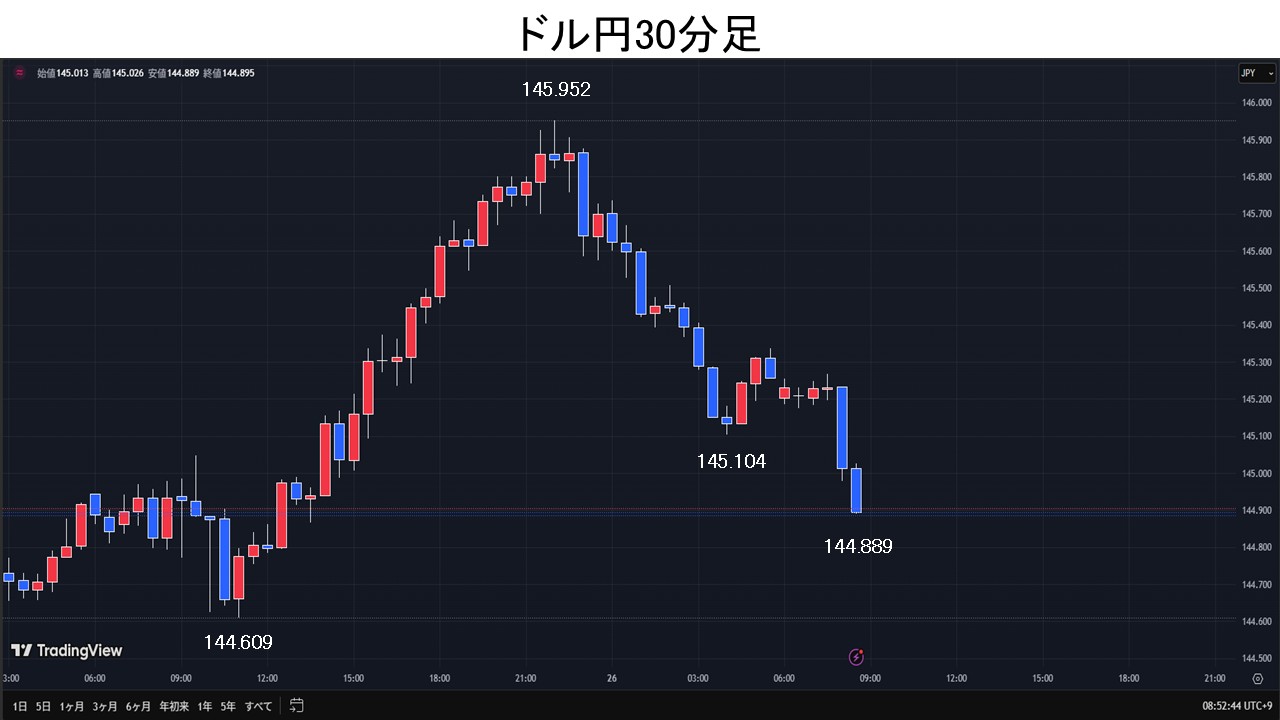 中東情勢への懸念が和らぐ中、円安・ドル高が先行し、ドル円は一時145.95まで上昇。