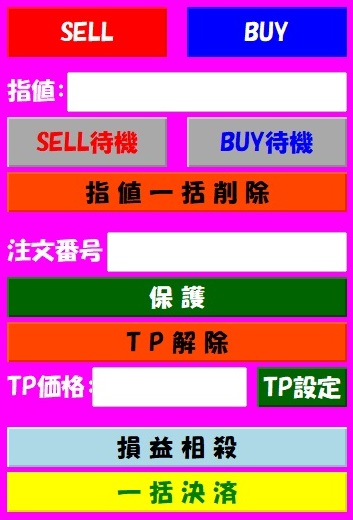 自動売買ON → チャートに指値を撒く(SELL BUY待機ボタン)or 裁量で入っていく(一番上のSELL BUYボタン)