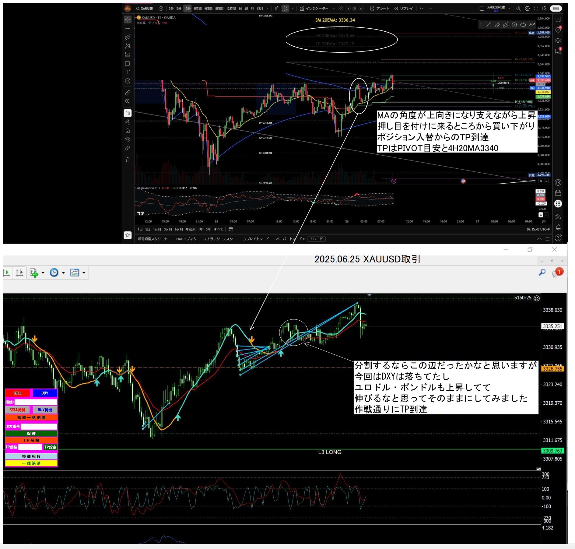 2025.06.25の取引チャート履歴 15分20MA押し目狙いから入りました