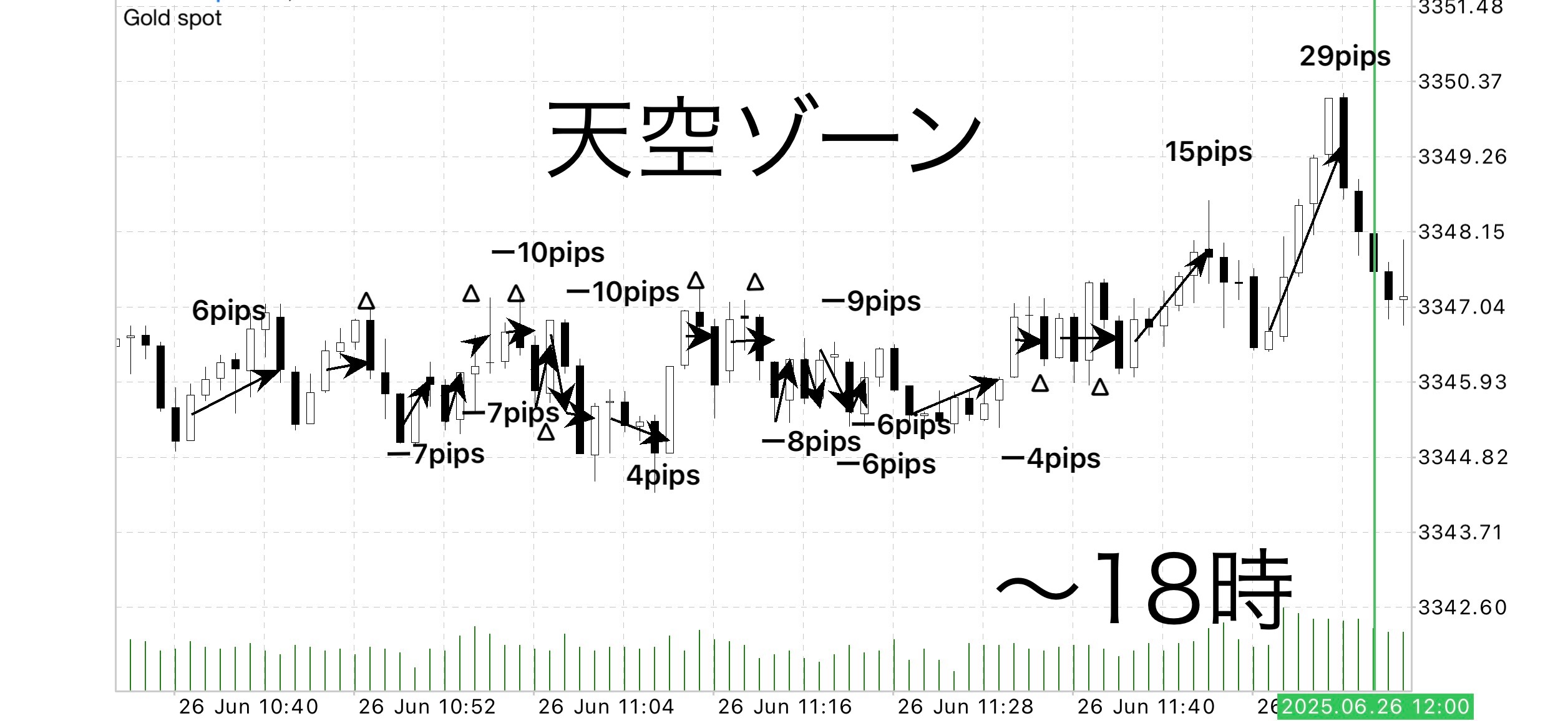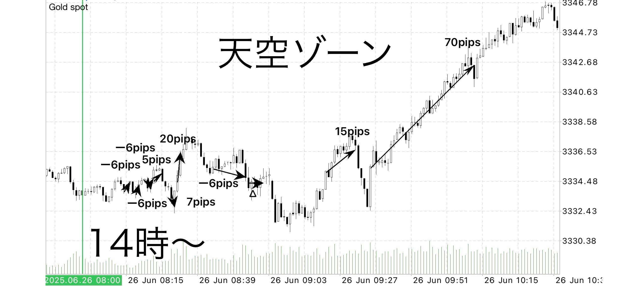 (GOLD 1分足・2025年6月26日・14時〜18時)