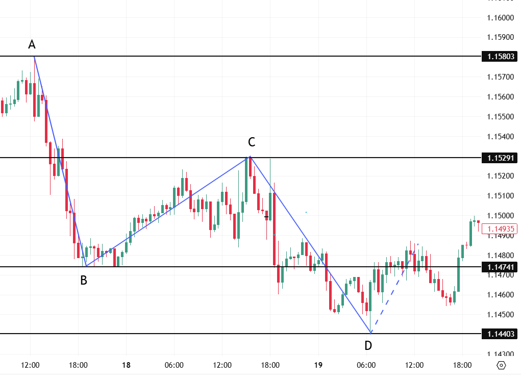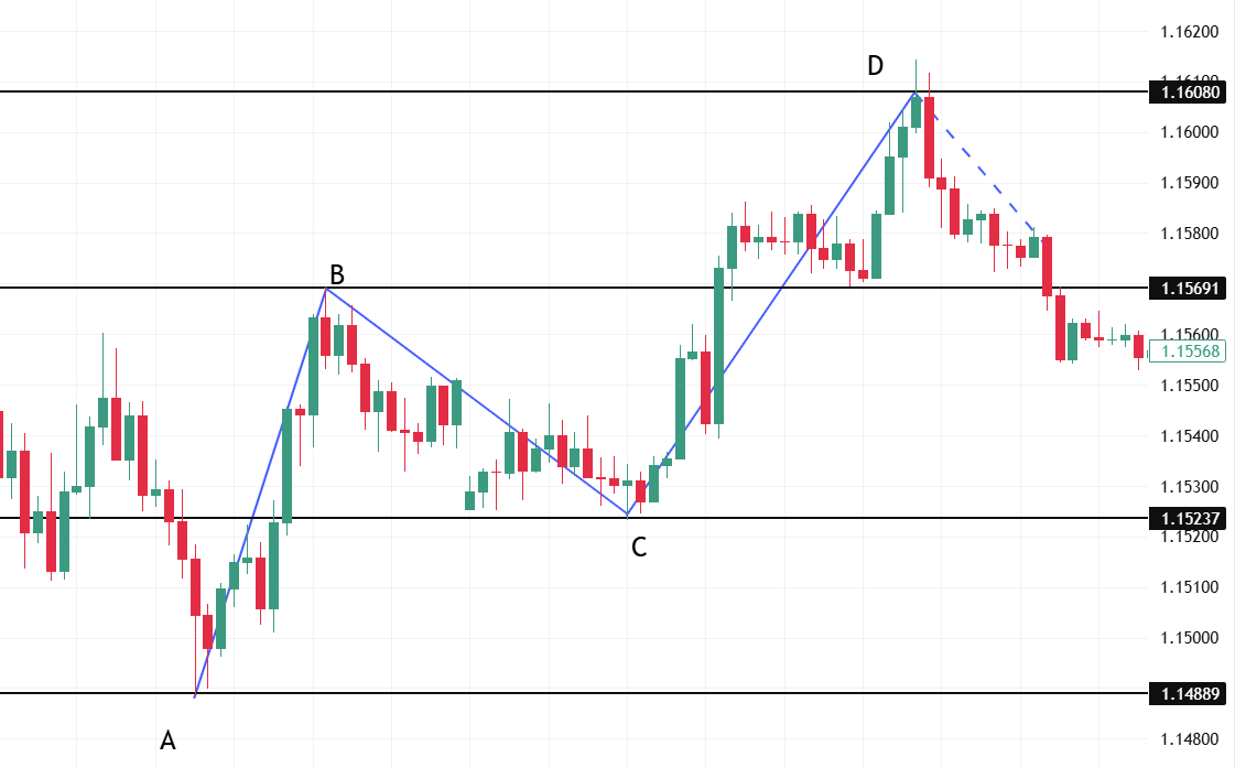このパターンは、価格が「波のように動く」という前提に基づいており、その波の高値・安値(スイングポイント)をA、B、C、Dと名付けて構成されます。