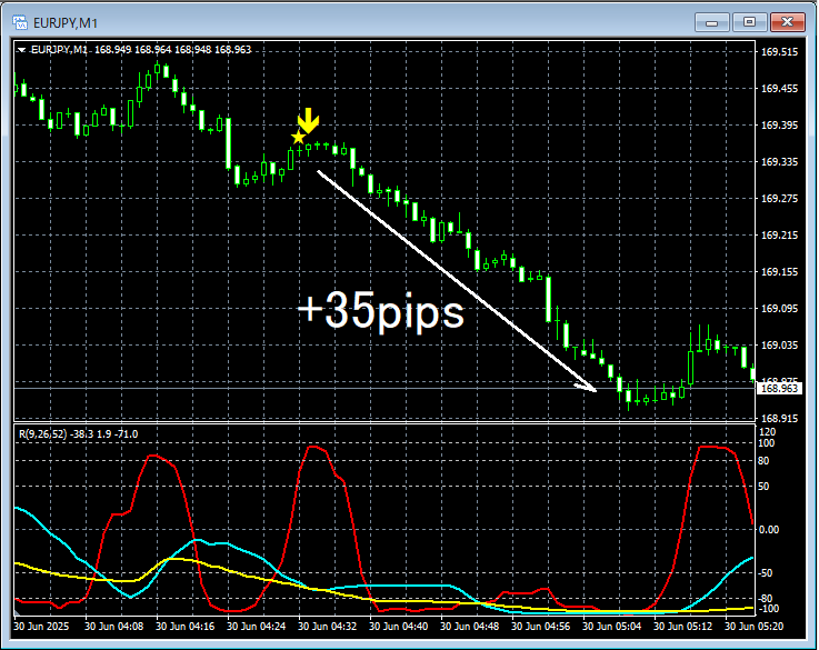 【RCIを極めて勝つ!!】1分足短期トレード(スキャルピング)を楽しもう(28) ユーロ円 本日 2025/6/30