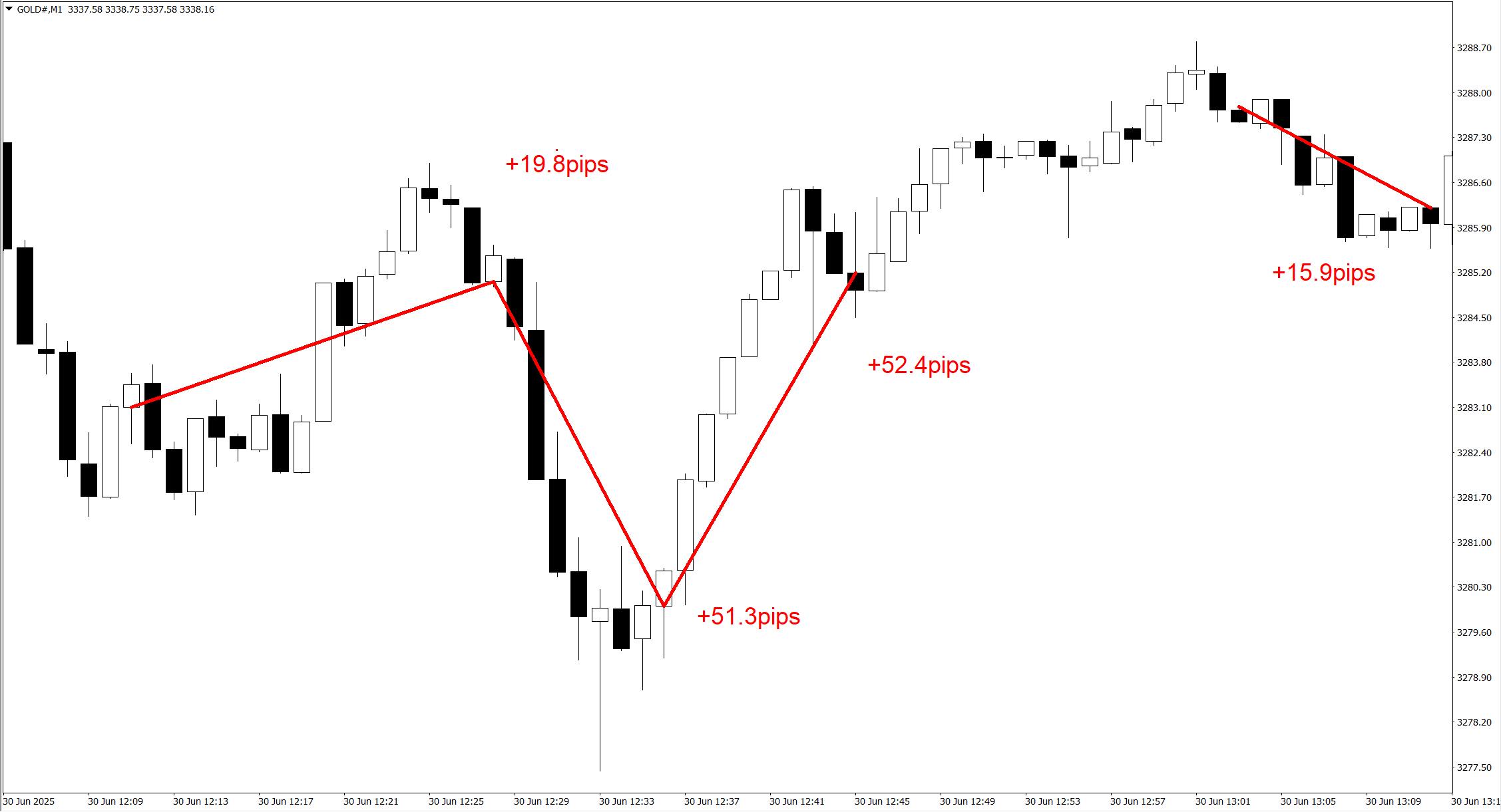 1分足レベルの、小さな相場の行き過ぎに対する反発も