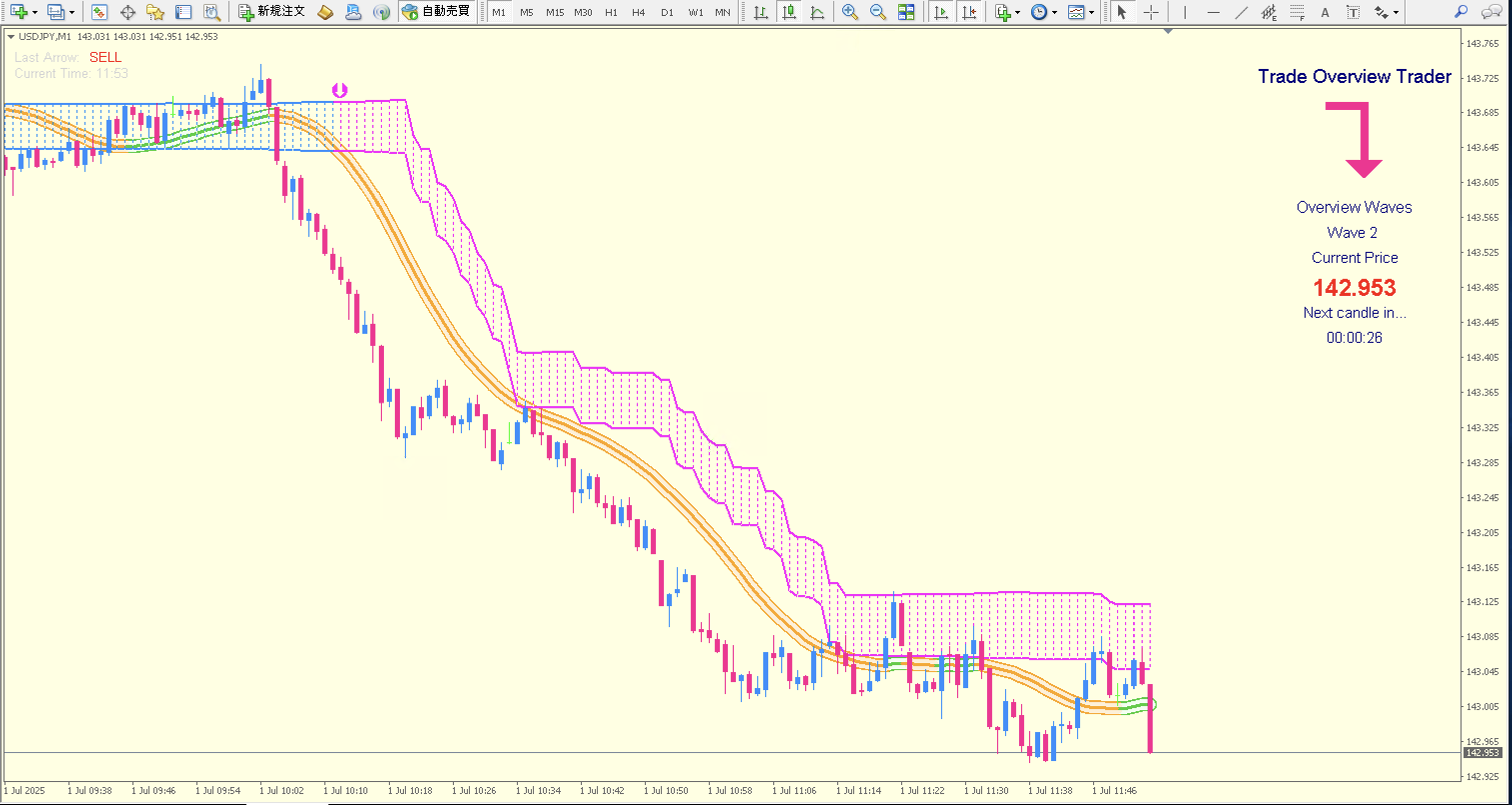 そのような状況で、昨日午前中に売りシグナルが揃ってから現在はシグナル通り下へ。