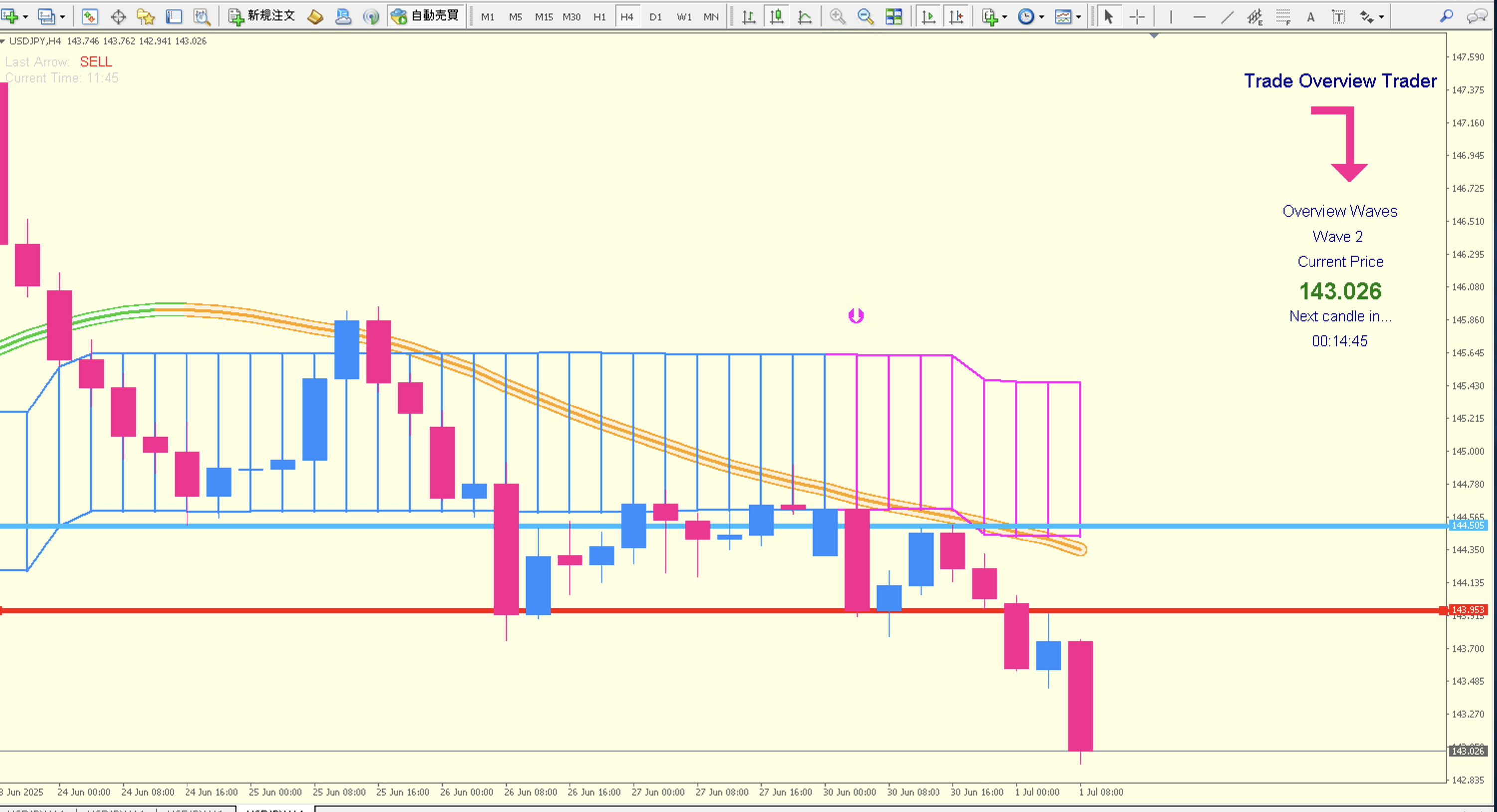 水色ライン:トレード大全の特典インジケーターを使った戻りのタイミング