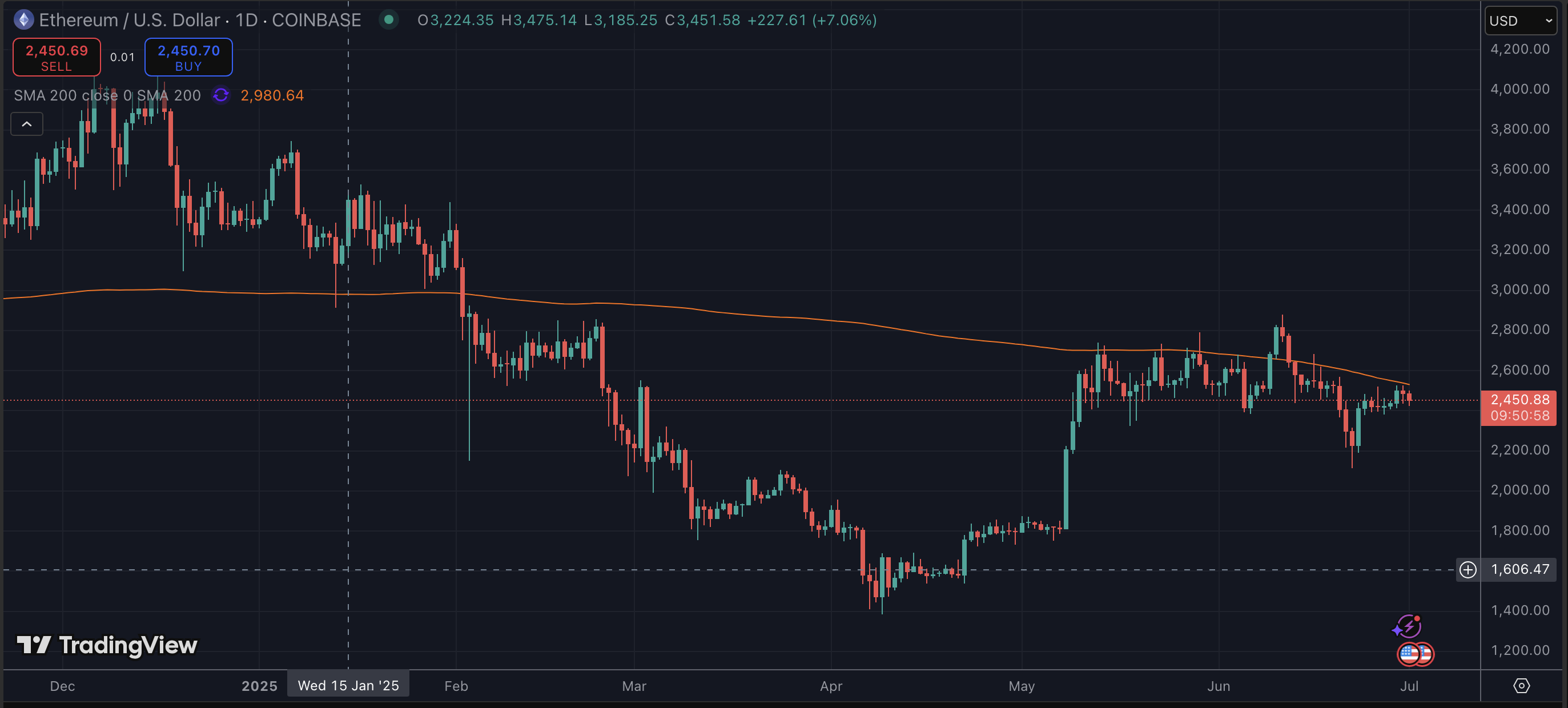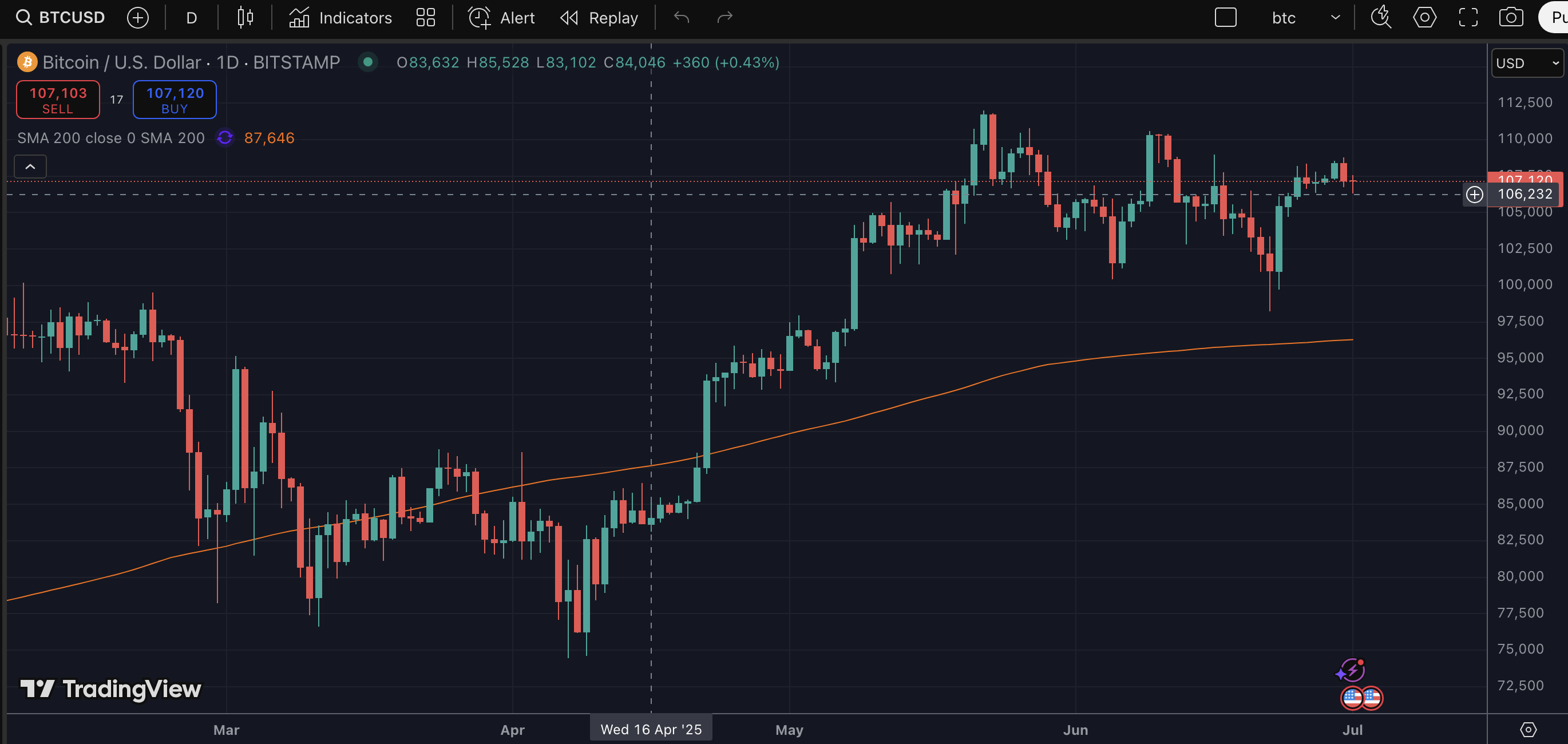 ビットコインは先々週のイスラエル、イラクの戦争に起因した下落からすでに価格が回復しており、先週は105000ドルから徐々に価格を切り上げ現在は106000ドルの水準となっています。