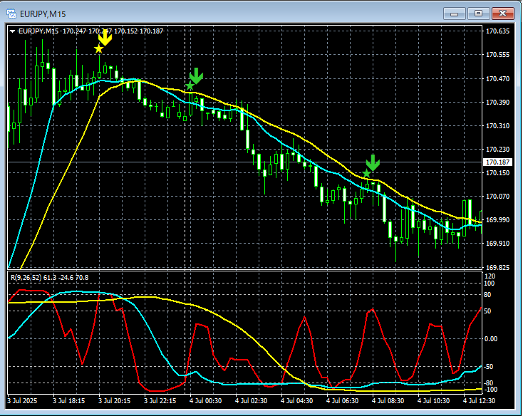 ユーロ円 EURJPY 15分足 2025年7月4日