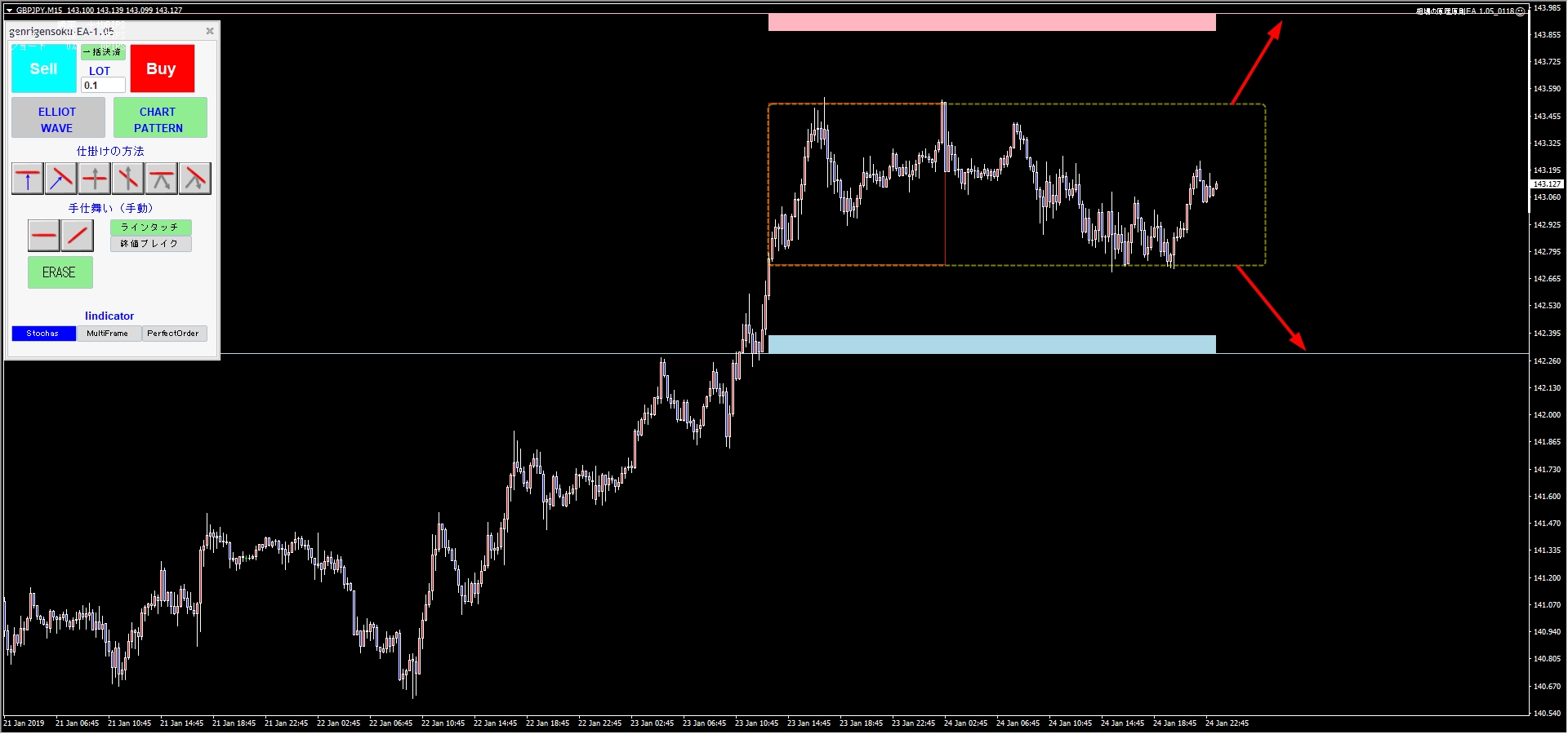 勿論、EAについては、チャートパターンのアウトプットの出し方のマニュアルはありますが、裁量トレーダーには、チャートパターンを判別する能力を問われます。