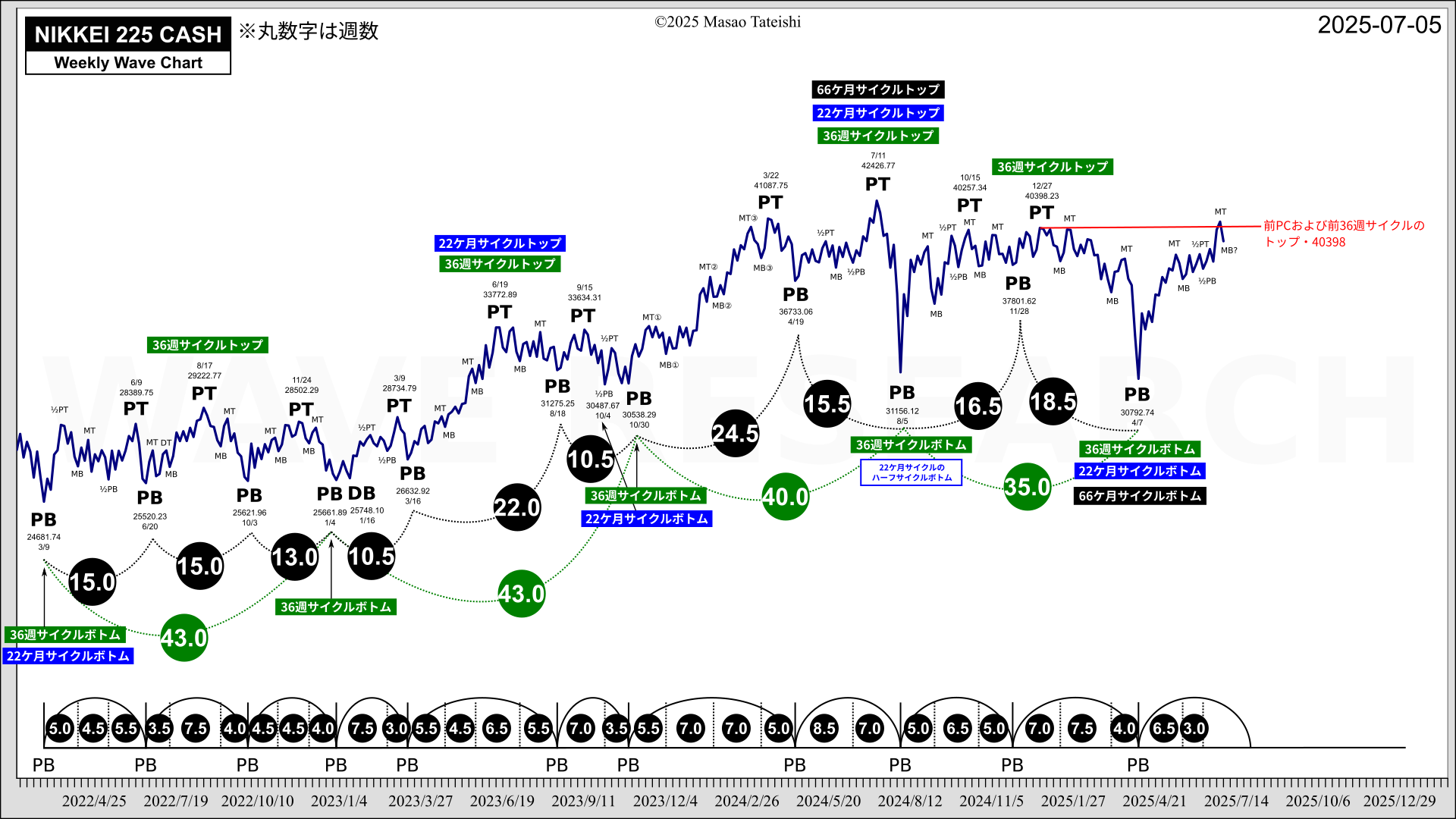 日経平均株価サイクル分析 2025-07-05