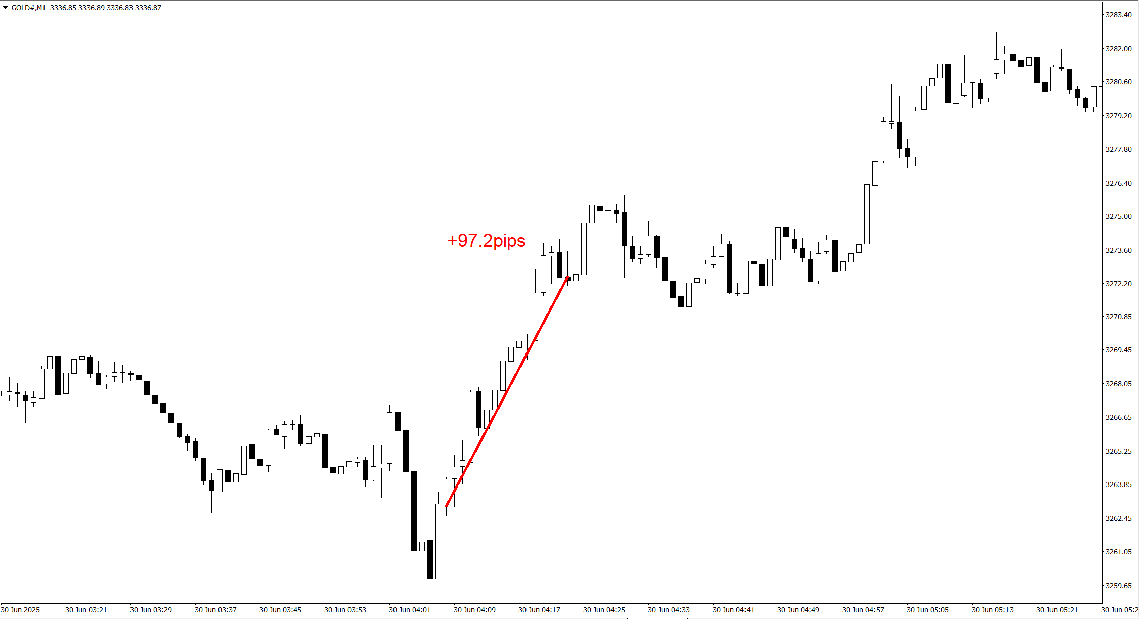 こちらはゴールドの1分足です。