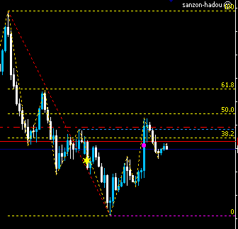 今回は4時間足で閃光サインが出たので、その後戻り目を狙う相場環境でした。