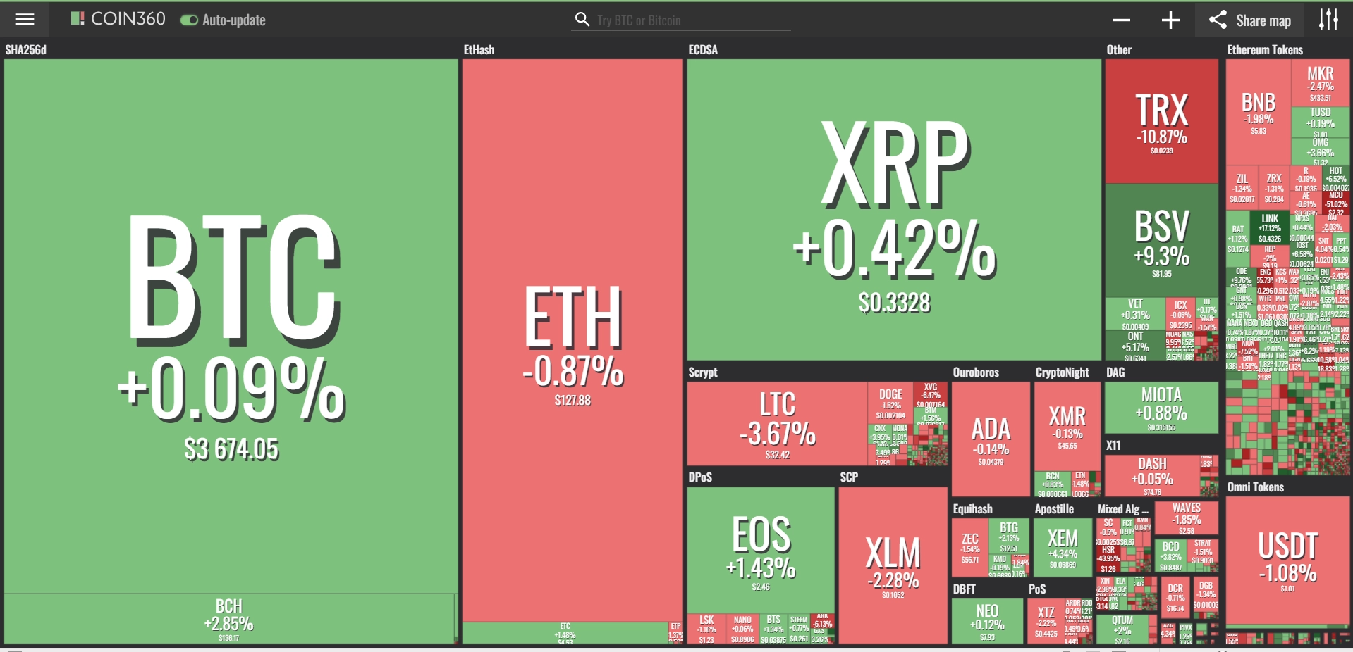 coinmarketcap(コインマーケットキャップ)のサイトから、ドミナンス(各銘柄が仮想通貨全体の時価総額に占めるパーセンテージ)を定点観測していきます。仮想通貨全般が下方向に大きく動き出している相場状況を受け、毎日更新することとし、仮想通貨業界を俯瞰および転換期を早期に発見することを目的とします。