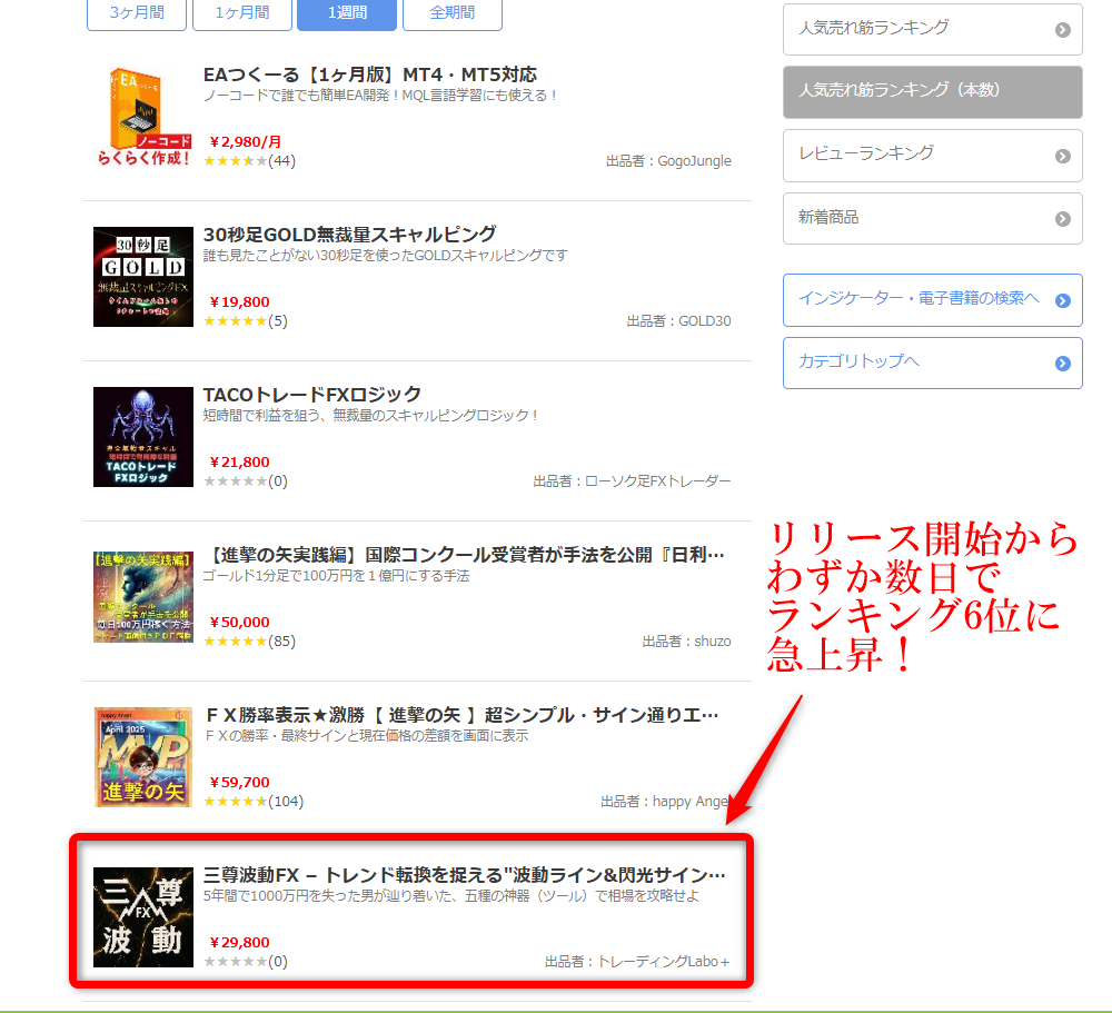 「三尊波動FX」のランキング6位入りは、開発者として非常に嬉しい出来事でした。