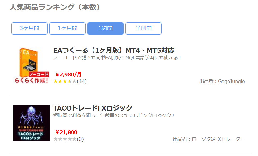私が出品している7つのロジックは全て対象になっています。